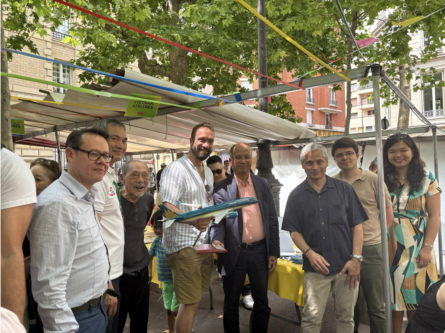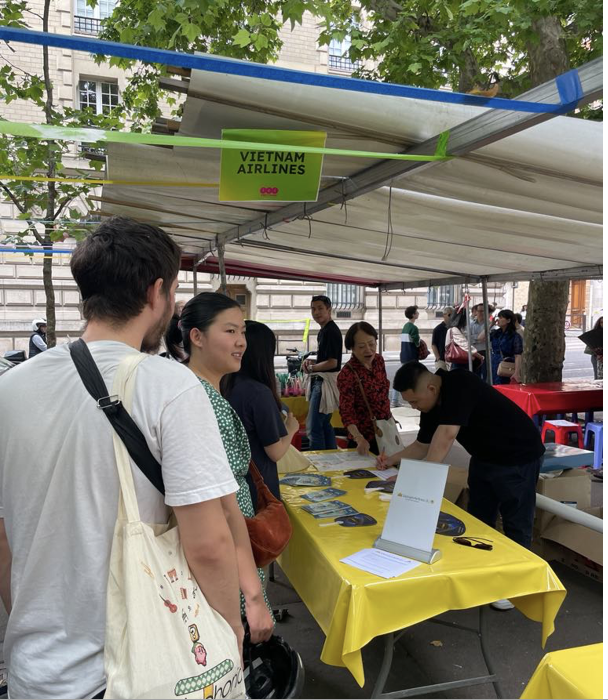 Các hoạt động trải nghiệm như chụp ảnh cùng mô hình máy bay Vietnam Airlines và bốc thăm trúng thưởng vé máy bay khứ hồi Pháp – Việt đã tạo nên bầu không khí vô cùng sôi động, thu hút sự quan tâm của đông đảo khách tham dự.