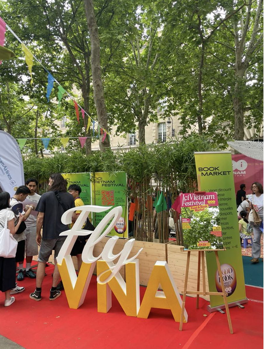 Với vai trò là hãng hàng không quốc gia và đối tác chính thức của “Ici Vietnam Festival 2025”, Vietnam Airlines đã phối hơp cùng đại lý du lịch Pacific Voyages thiết kế không gian trưng bày với nón lá, mô hình máy bay và nhiều vật phẩm đặc trưng của hãng.