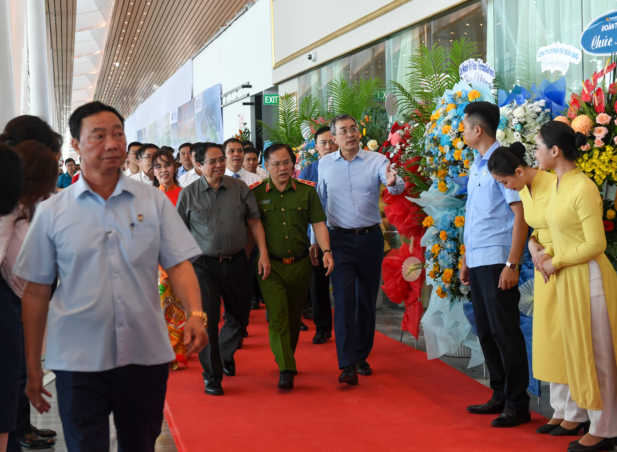 Trước thời điểm cất cánh, Thủ tướng Chính phủ Phạm Minh Chính cùng lãnh đạo các bộ, ban, ngành đã đến cửa ra máy bay số 12 của chuyến bay VN244 để trực tiếp kiểm tra quy trình làm thủ tục lên máy bay bằng công nghệ sinh trắc học tích hợp trong ứng dụng VNeID.