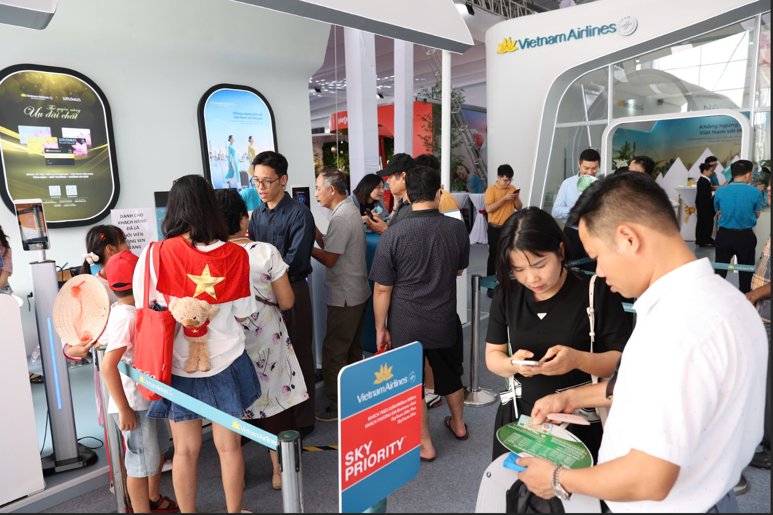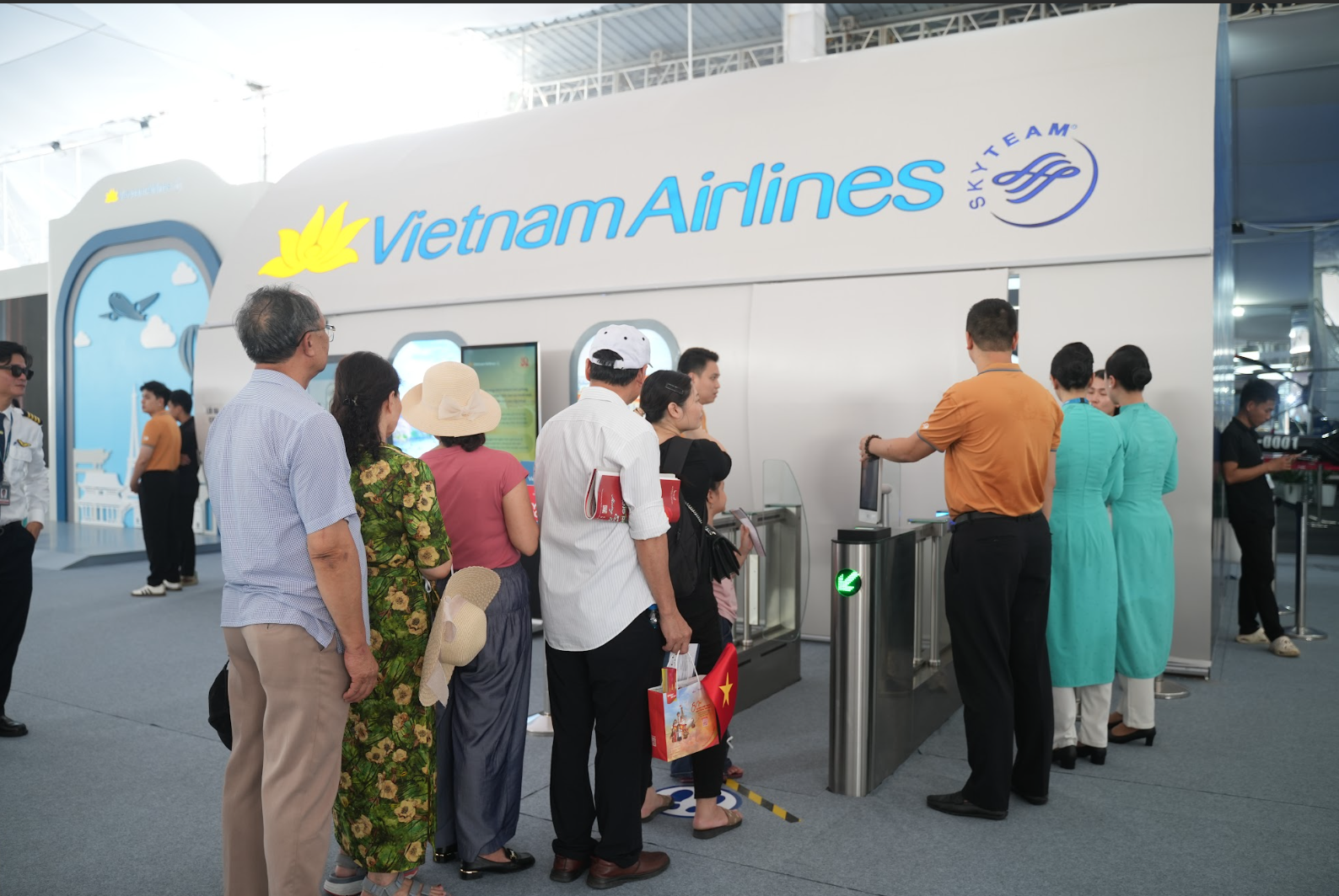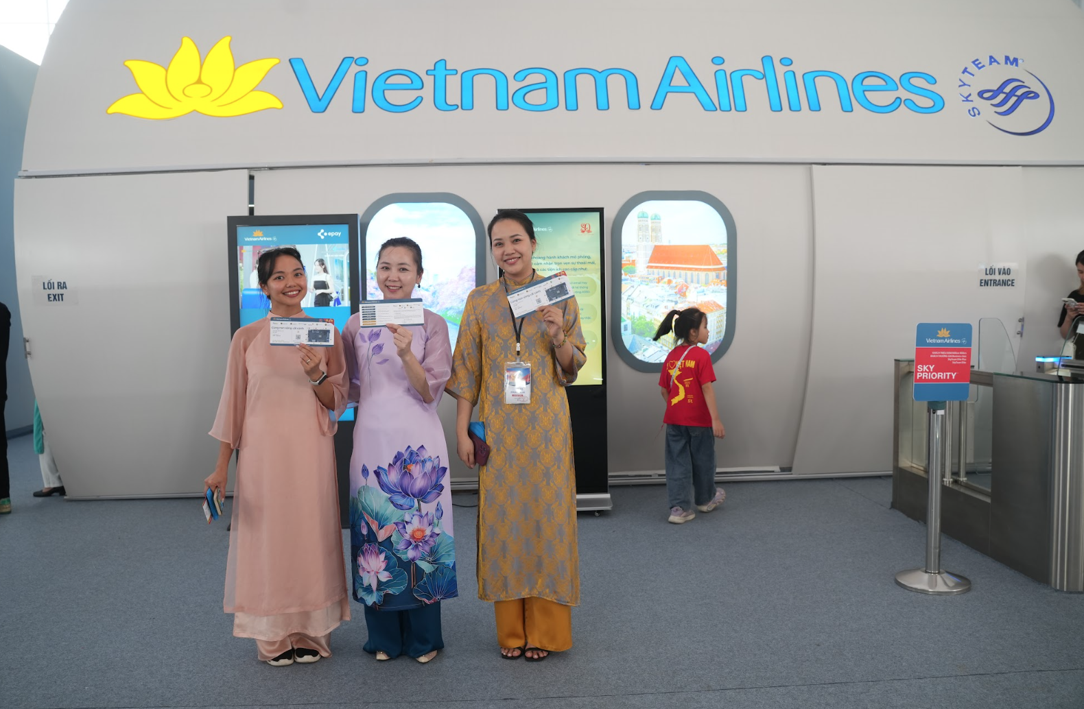 Không chỉ đơn thuần là tấm thẻ lên máy bay, mỗi boarding pass còn mang ý nghĩa tượng trưng cho một chuyến bay cảm xúc. Khách tham quan được hóa thân thành những hành khách thực thụ, bước vào không gian triển lãm rộng 1.500 m² – gian trưng bày hàng không lớn nhất tại sự kiện, nằm ở vị trí trung tâm khu hàng không vũ trụ trong phân khu “Khát vọng bầu trời”.