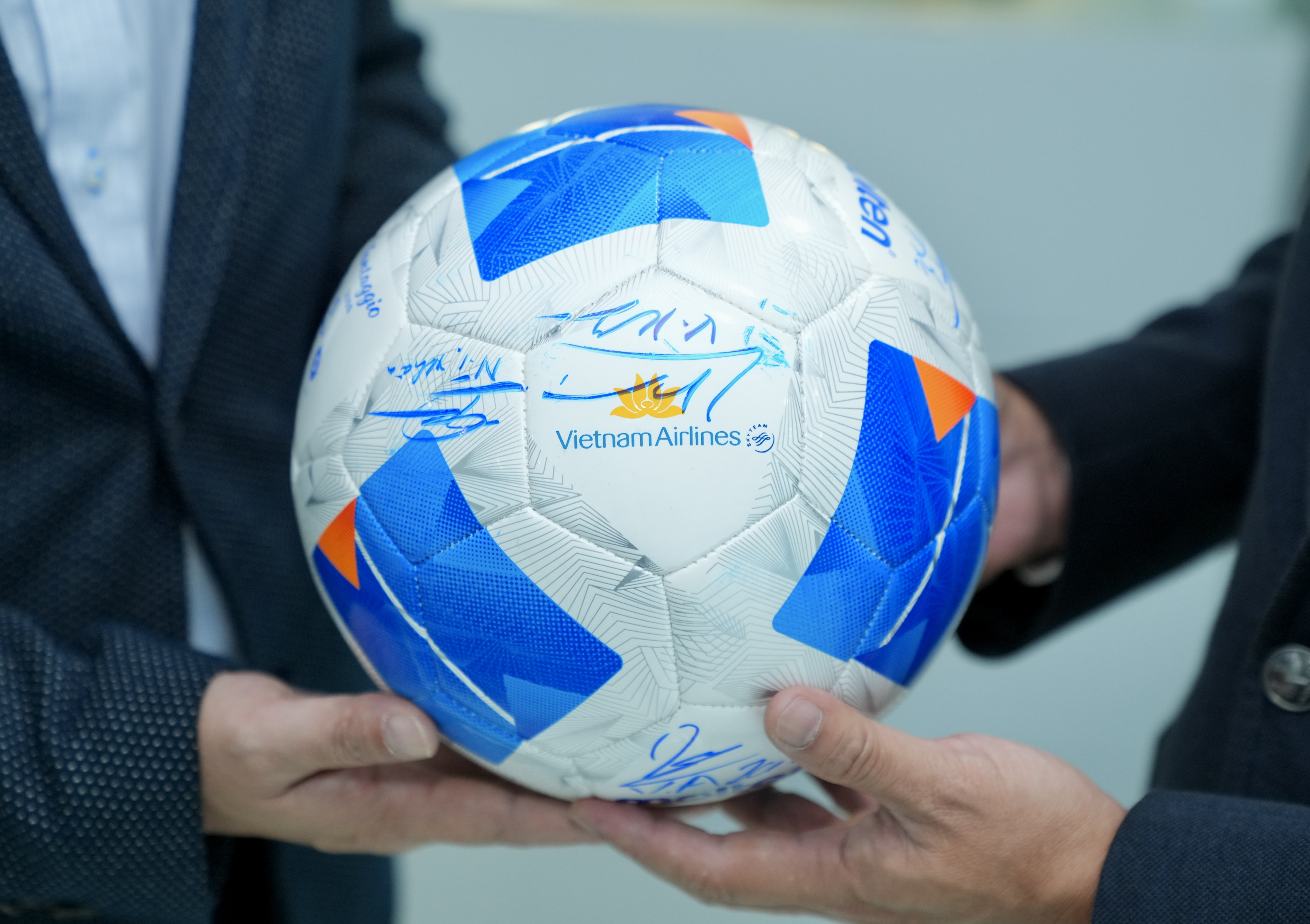 Quả bóng đặc biệt từ đội tuyển bóng đá quốc gia Việt Nam sẽ được lưu giữ tại phòng Khánh Tiết của TCT, biểu tượng cho niềm tự hào và sự gắn kết giữa Hãng Hàng không Quốc gia và nền thể thao nước nhà.