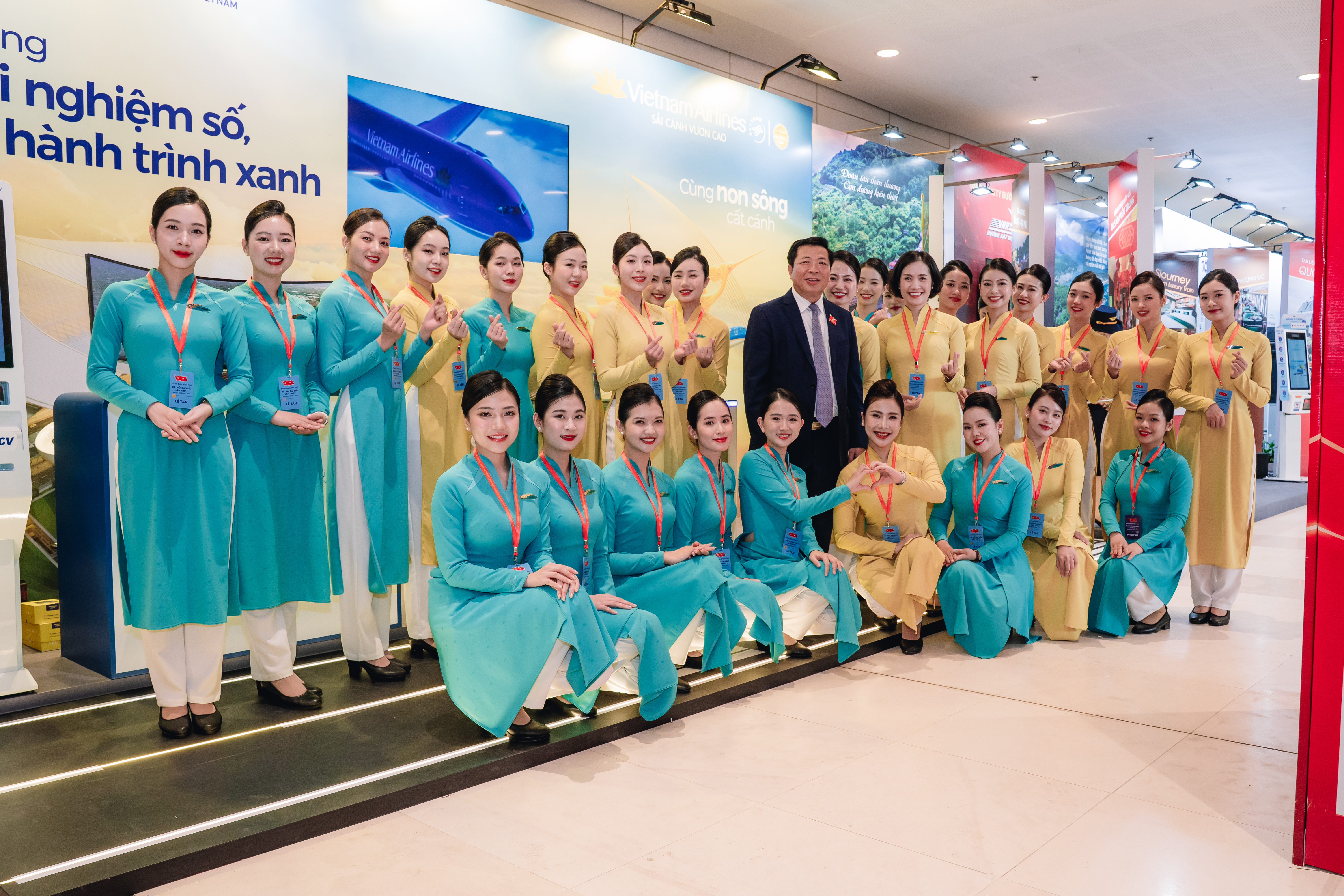 Ở vị thế Hãng hàng không quốc gia Việt Nam, Vietnam Airlines trưng bày nhiều tư liệu, hình ảnh và phim tư liệu giới thiệu hành trình hơn ba thập kỷ phát triển, một chặng đường gắn liền với sứ mệnh kết nối vùng miền, mở rộng giao thương quốc tế và quảng bá hình ảnh đất nước trên bầu trời thế giới. Gian trưng bày cũng nhấn mạnh vai trò của Vietnam Airlines trong việc hoàn thành xuất sắc các nhiệm vụ chính trị vận chuyển an toàn hàng triệu lượt hành khách, hàng hóa, trang thiết bị phục vụ công tác đối ngoại và quốc phòng.