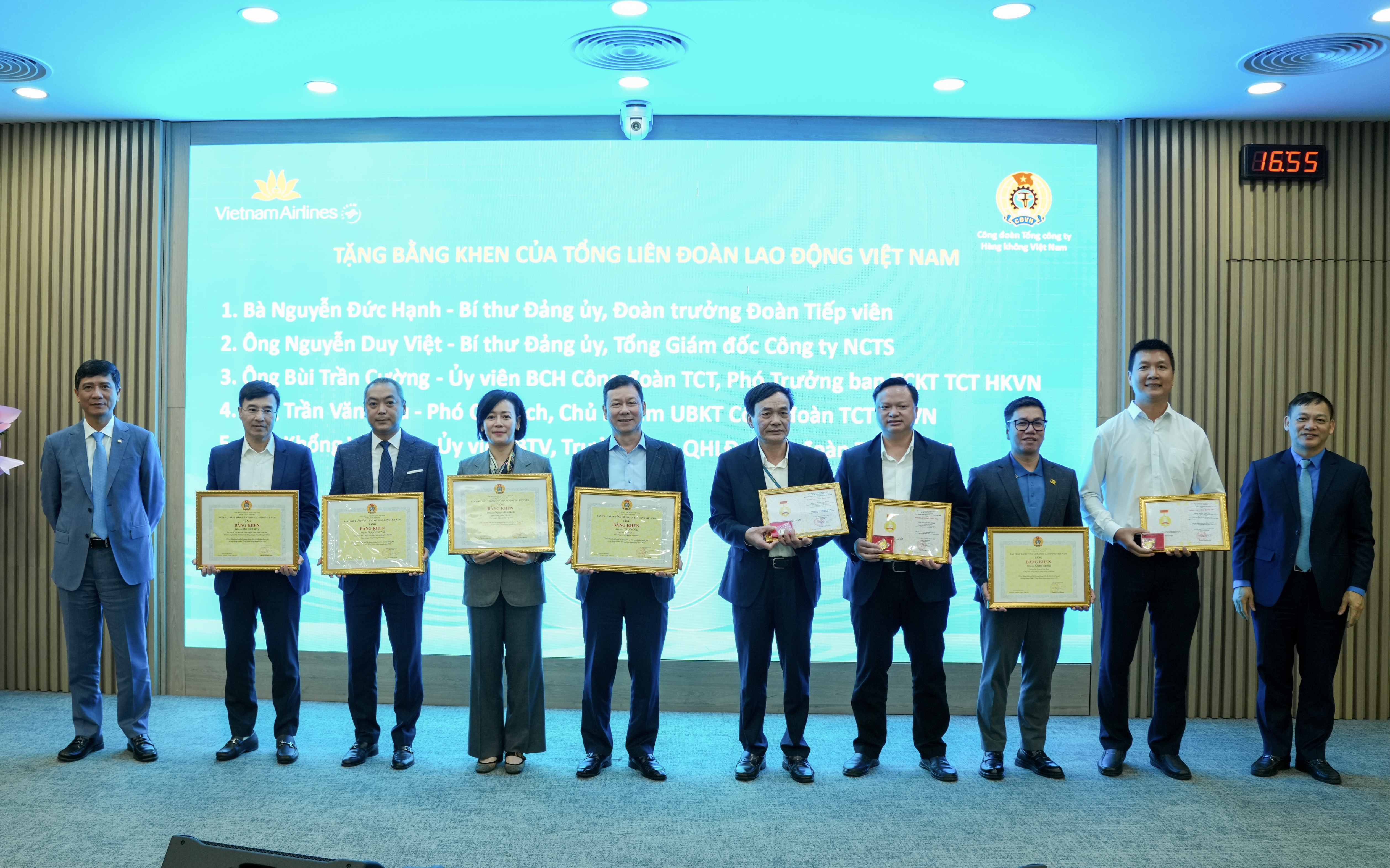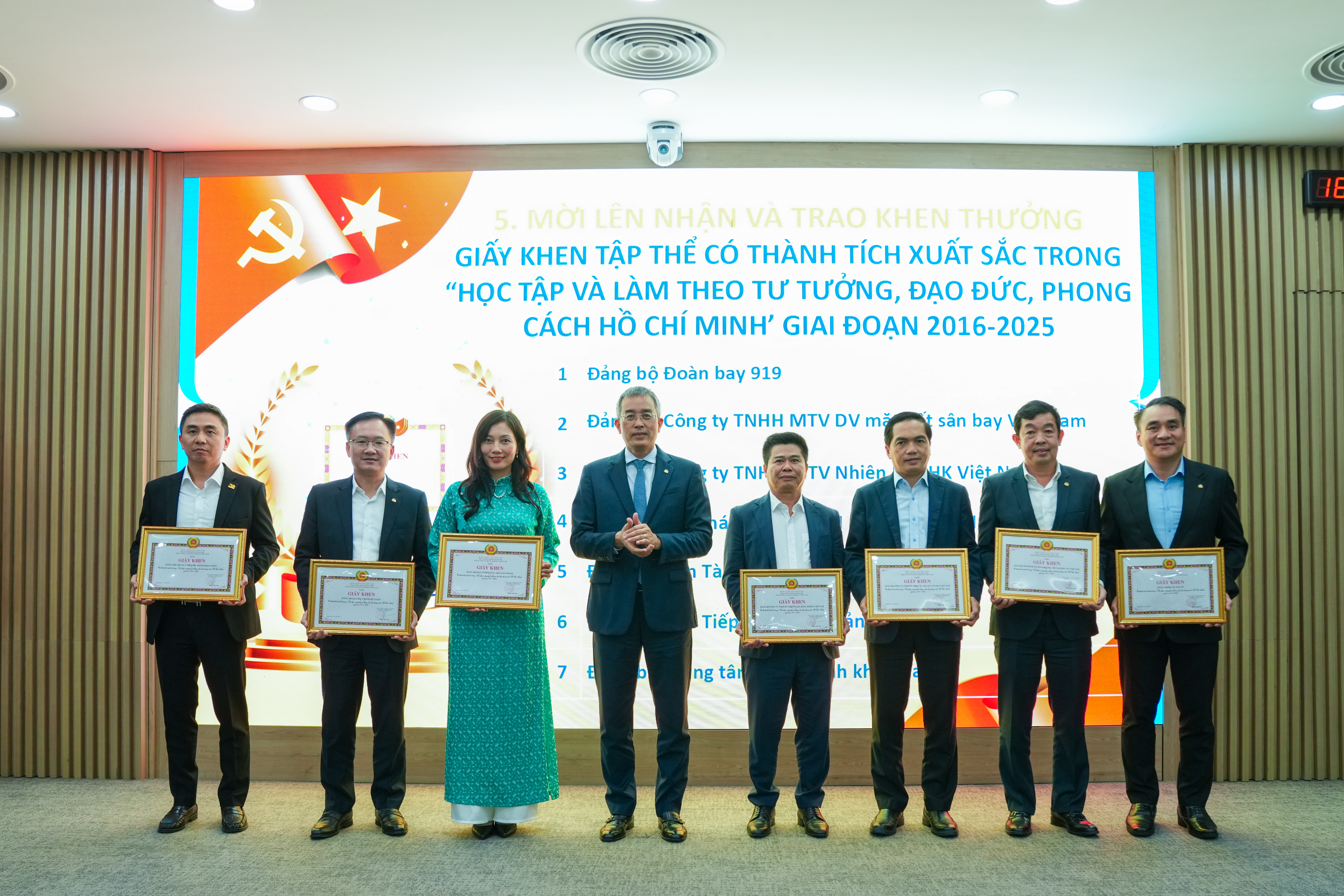 Để ghi nhận, động viên các tập thể, cá nhân đã nỗ lực đóng góp cho thành tích của Tổng công ty trong năm qua, tại Hội nghị, Đảng ủy, Ban lãnh đạo Tổng công ty đã trao nhiều phần thưởng ở nhiều nội dung. Trong công tác Đảng, Đảng ủy Khối doanh nghiệp Trung ương tặng Bằng khen cho 11 “Đảng viên hoàn thành xuất sắc nhiệm vụ” tiêu biểu 5 năm 2020-2024; Đảng ủy Tổng công ty tặng giấy khen cho 47 “Đảng viên hoàn thành xuất sắc nhiệm vụ” 5 năm 2021-2025 và khen thưởng 7 tập thể có thành tích xuất sắc trong “Học tập và làm theo tư tưởng, đạo đức, phong cách Hồ Chí Minh” giai đoạn 2016-2025, đề nghị Ban Thường vụ Đảng ủy Chính phủ xét tặng Cờ “Hoàn thành xuất sắc nhiệm vụ” tiêu biểu 5 năm liền 2021-2025 cho 1 tổ chức cơ sở Đảng là Đảng bộ Công ty Dịch vụ mặt đất sân bay Việt Nam chi nhánh Nội Bài và 5 đảng viên.