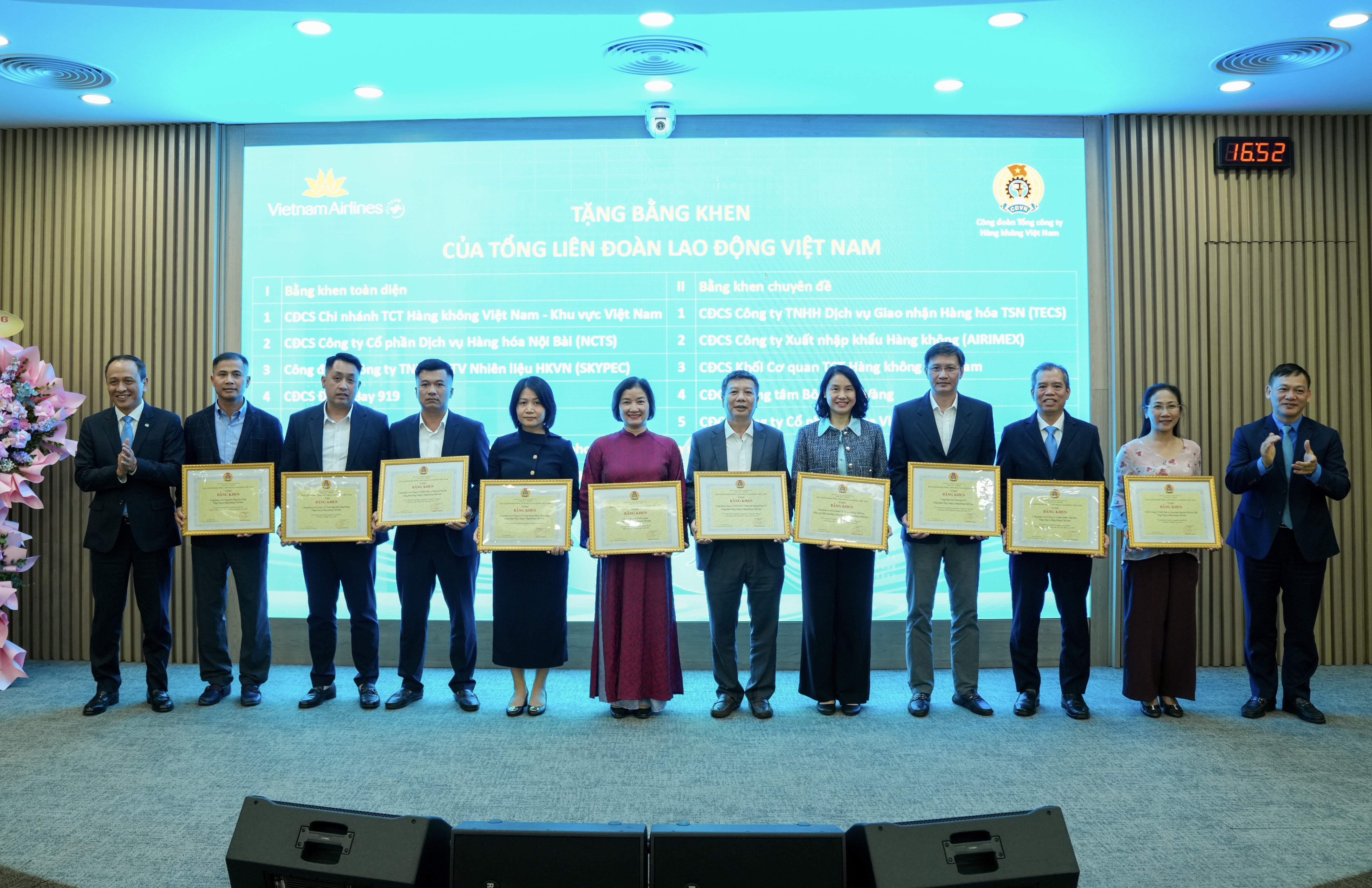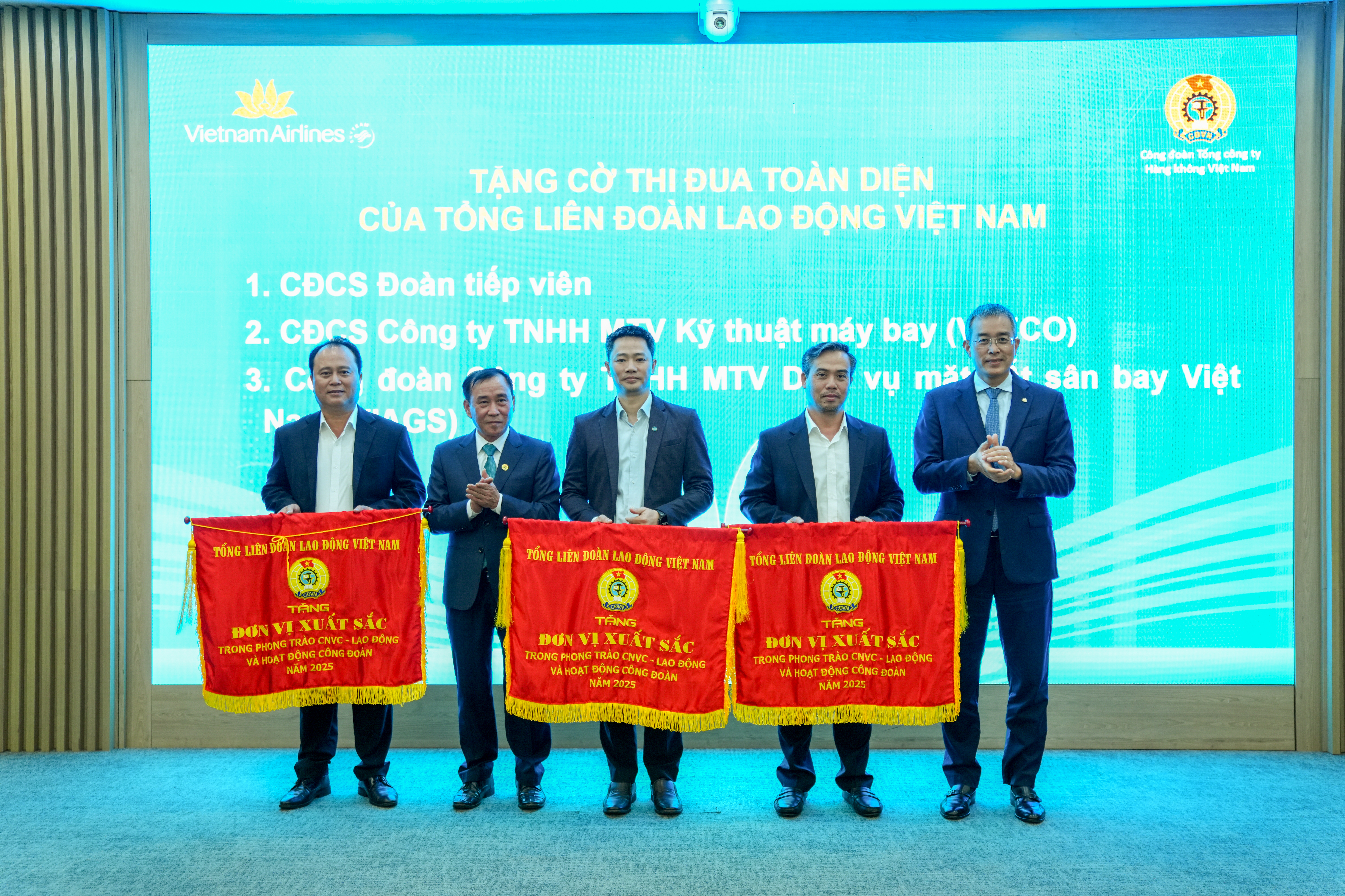 Cũng từ sự lãnh đạo, chỉ đạo sát sao của Đảng ủy năm 2025, các đoàn thể, trong đó có Công đoàn Tổng công ty Hàng không Việt Nam đã phát huy được vai trò, triển khai các hoạt động thiết thực, hiệu quả, Công đoàn Tổng công ty đã phát huy tốt vai trò đại diện, bảo vệ quyền lợi người lao động. 100% đơn vị ký kết Thỏa ước lao động tập thể với các điều khoản ưu đãi cao hơn quy định của Nhà nước. Vietnam Airlines đã đảm bảo việc làm cho đội ngũ lao động, thực hiện tăng lương, mở rộng chế độ bảo hiểm hưu trí tự nguyện theo đúng phương châm “Người lao động là tài sản quý giá nhất”. Đặc biệt, trong dịp Tết Ất Tỵ 2025, Công đoàn đã chi gần 40 tỷ đồng chăm lo cho đoàn viên, tổ chức thành công 2 “Chuyến bay Công đoàn” đưa người lao động khó khăn về quê và hỗ trợ nhân viên làm việc trong điều kiện khắc nghiệt.