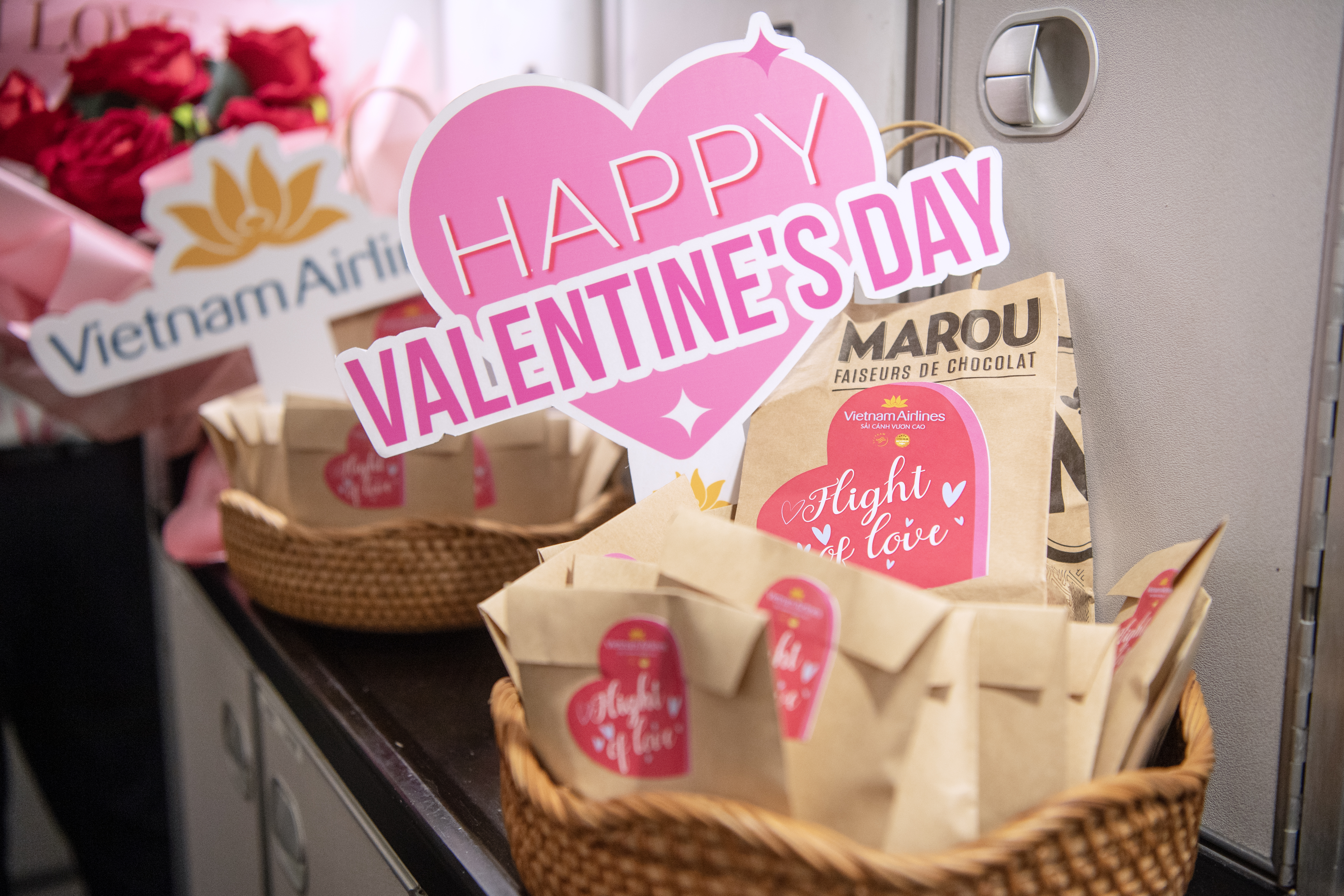 Sau phần phát thanh chúc mừng Ngày lễ tình nhân, các tiếp viên đã dành tặng món quà là kẹo chocolate tới các hành khách trên chuyến bay để chia sẻ với những người thân yêu của mình.