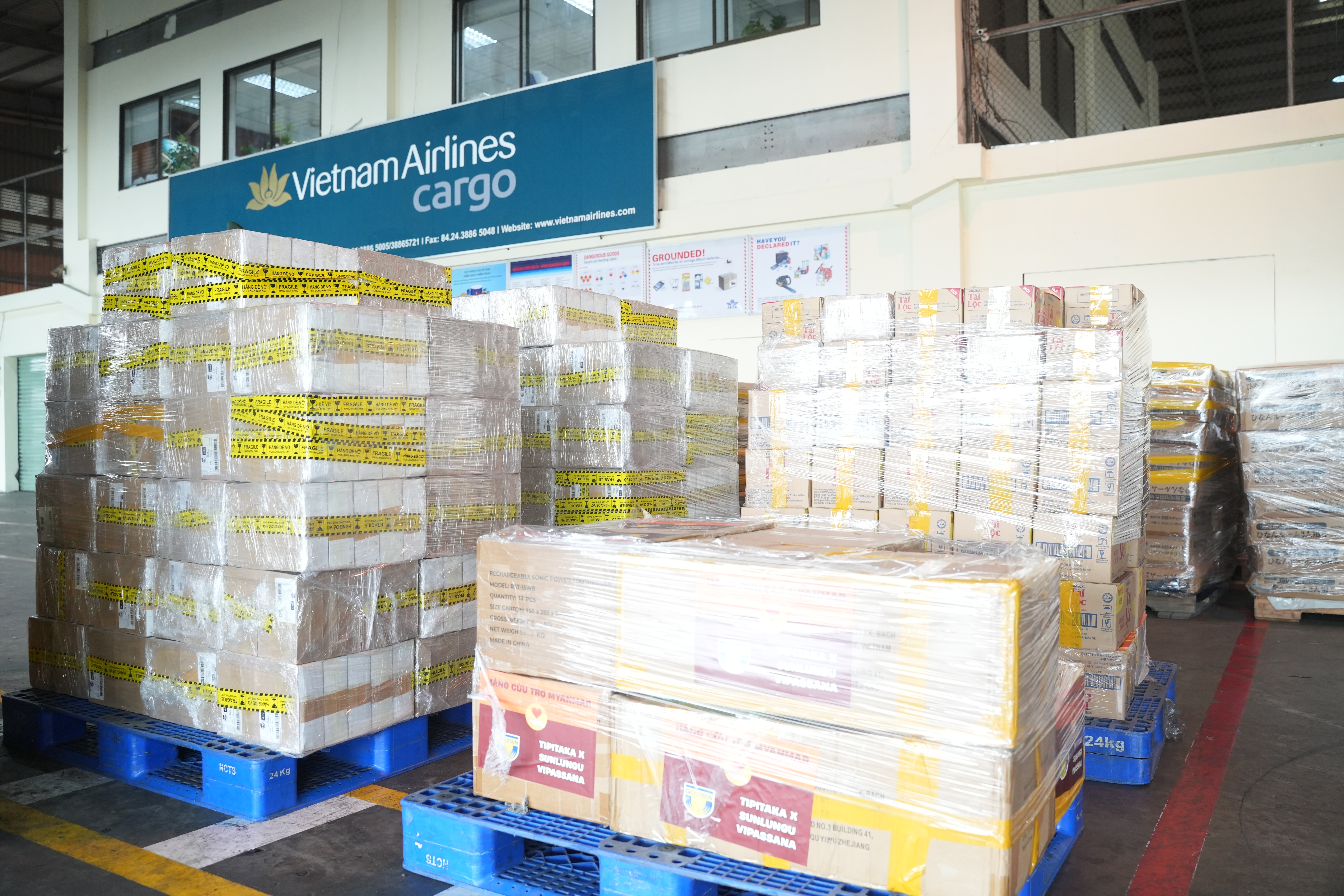 Chuyến bay mang số hiệu VN9711 của Vietnam Airlines cất cánh tại sân bay Nội Bài lúc 13h00 ngày 8/4, vận chuyển gần 30 tấn hàng hóa cứu trợ đến Myanmar. Đây là lô hàng do Bộ Quốc phòng và Bộ Công an Việt Nam gửi sang Myanmar nhằm giúp đỡ nước bạn vượt qua hậu quả thảm họa động đất nghiêm trọng vừa xảy ra.