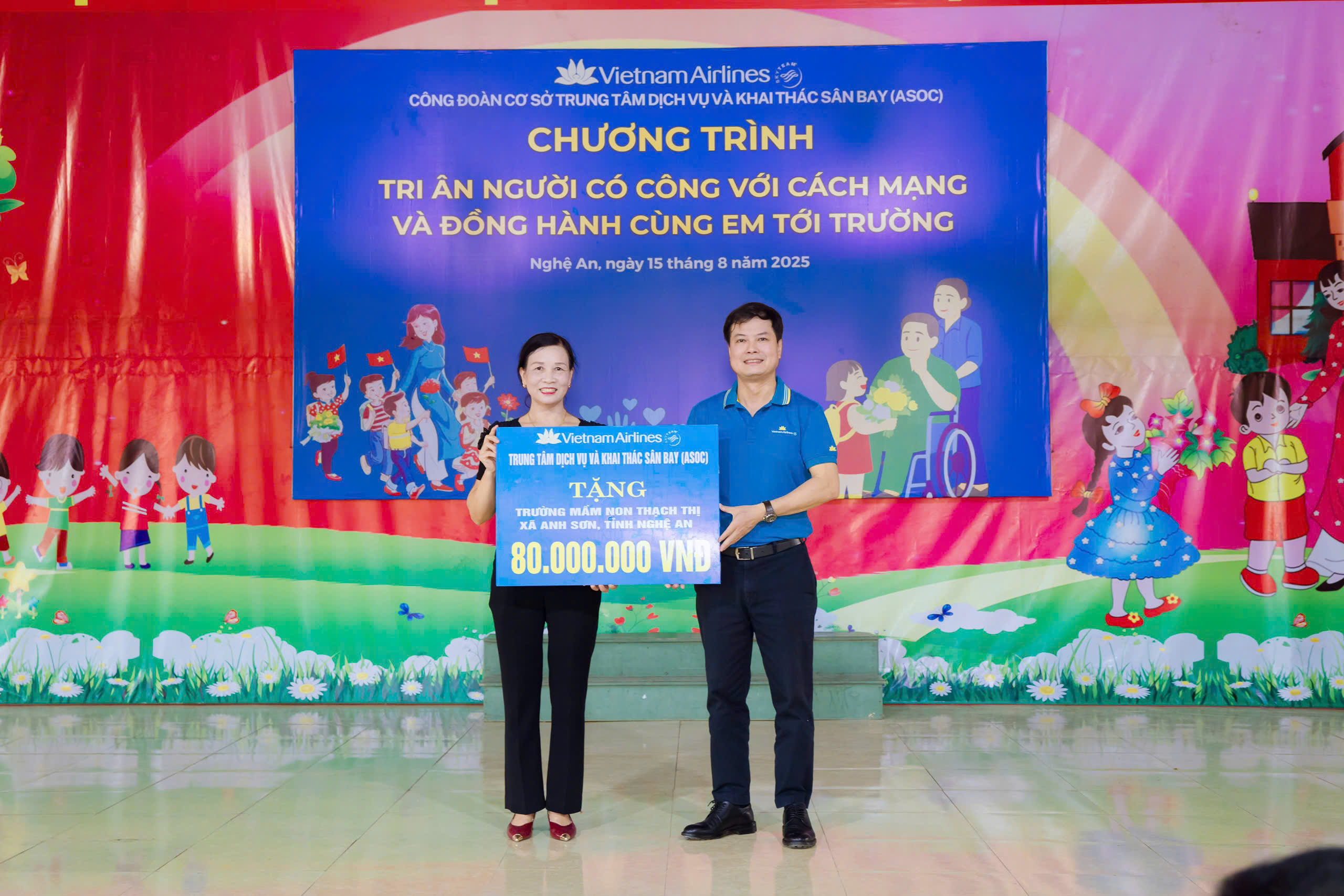 Sáng 14/8/2025, từ ba đầu sân bay căn cứ của Vietnam Airlines tại Thủ đô Hà Nội, TP. Đà Nẵng và TP. Hồ Chí Minh, BCH Đảng bộ, Công đoàn cơ sở cùng đoàn cán bộ, nhân viên Trung tâm Dịch vụ và Khai thác sân bay (ASOC) đã khởi hành đến Nghệ An. Vượt qua hàng trăm đến hơn nghìn cây số, các thành viên mang theo tinh thần đoàn kết, trách nhiệm và tấm lòng hướng về miền đất giàu truyền thống cách mạng.