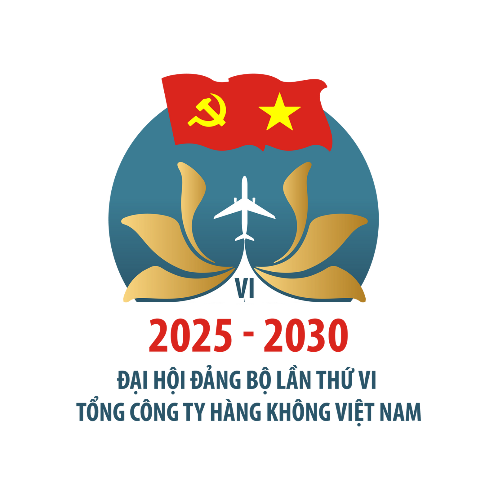 Tổng thể hình tròn màu xanh tượng trưng cho bầu trời bao la – không gian hoạt động đặc thù của ngành hàng không – đồng thời là biểu tượng cho sự vững vàng, khép kín và đoàn kết của một tập thể thống nhất. Sáu cánh hoa sen vàng được cách điệu mềm mại nhưng vẫn toát lên sức mạnh, không chỉ mang đậm biểu tượng văn hóa Việt Nam mà còn gợi hình ảnh đôi cánh nâng đỡ chiếc máy bay, thể hiện sự đồng hành, nâng bước của tập thể và của Đảng bộ trong hành trình phát triển.
