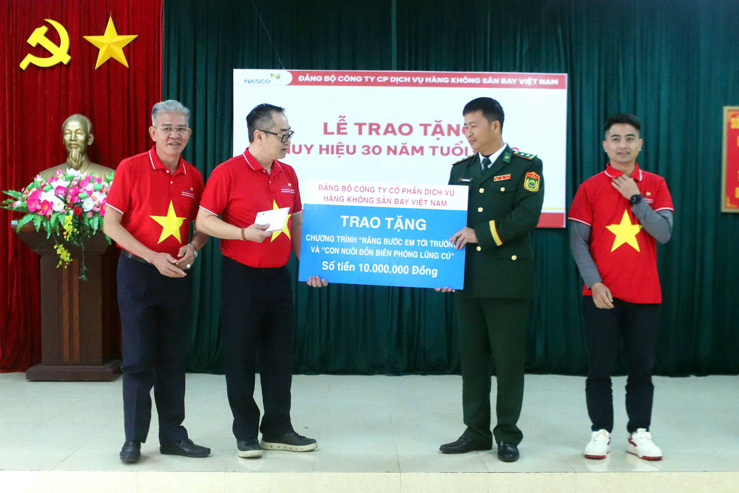 Sau nghi lễ chào cờ, tại Hội trường Đồn Biên phòng Lũng Cú, Đảng uỷ NASCO đã long trọng tổ chức Lễ trao tặng Huy hiệu 30 năm tuổi Đảng cho đồng chí Ngô Tiến Dũng, đảng viên chi bộ Trung tâm Dịch vụ vận tải ô tô Hàng không, đồng chí Nguyễn Quý Chiến, đảng viên thuộc chi bộ Văn phòng Công ty.