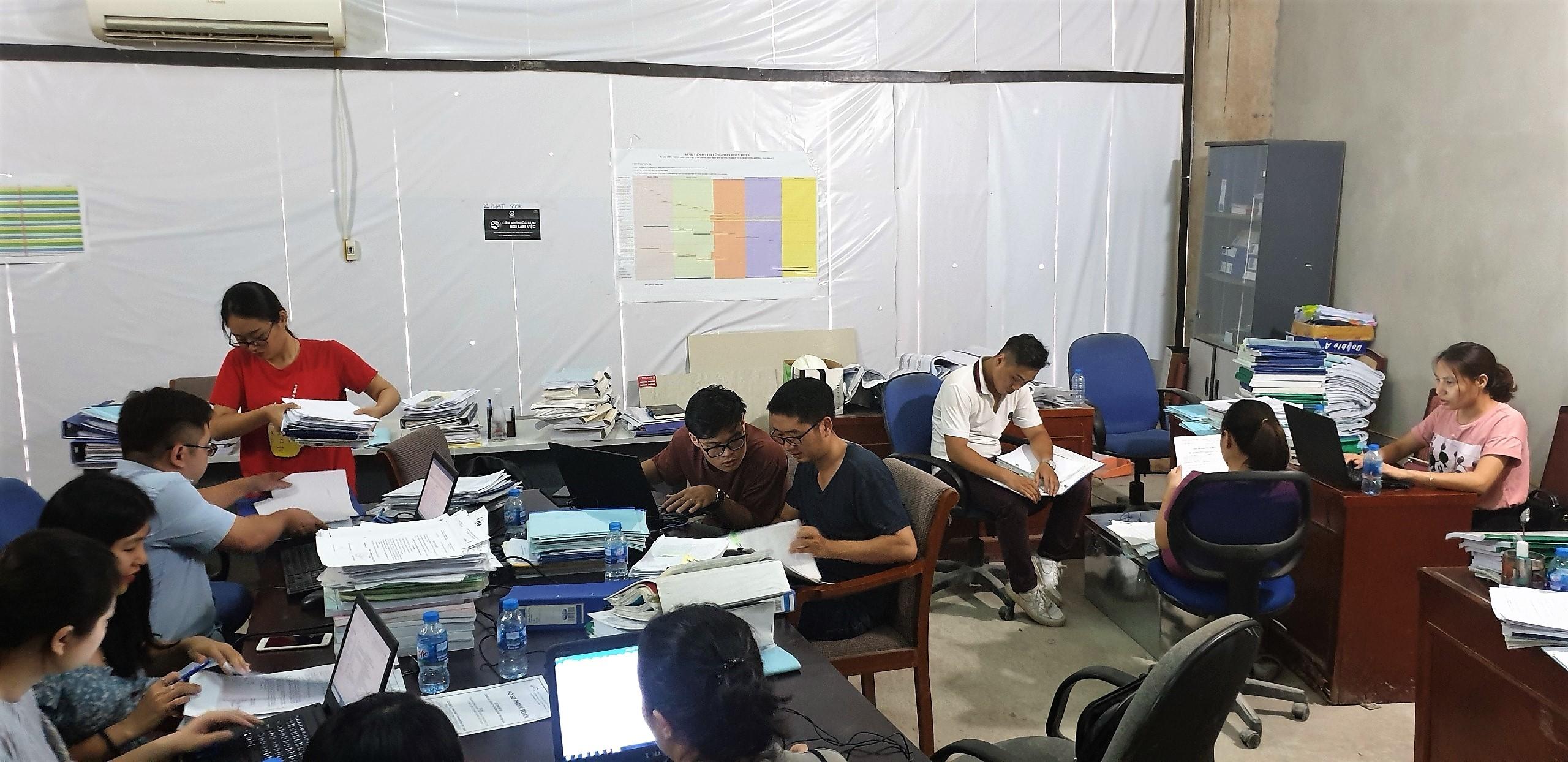 Đoàn viên thanh niên tham gia hoạt động Công trình Đoàn thanh niên phối hợp sắp xếp dữ liệu giúp Ban ĐTMS. (Ảnh: AITS).