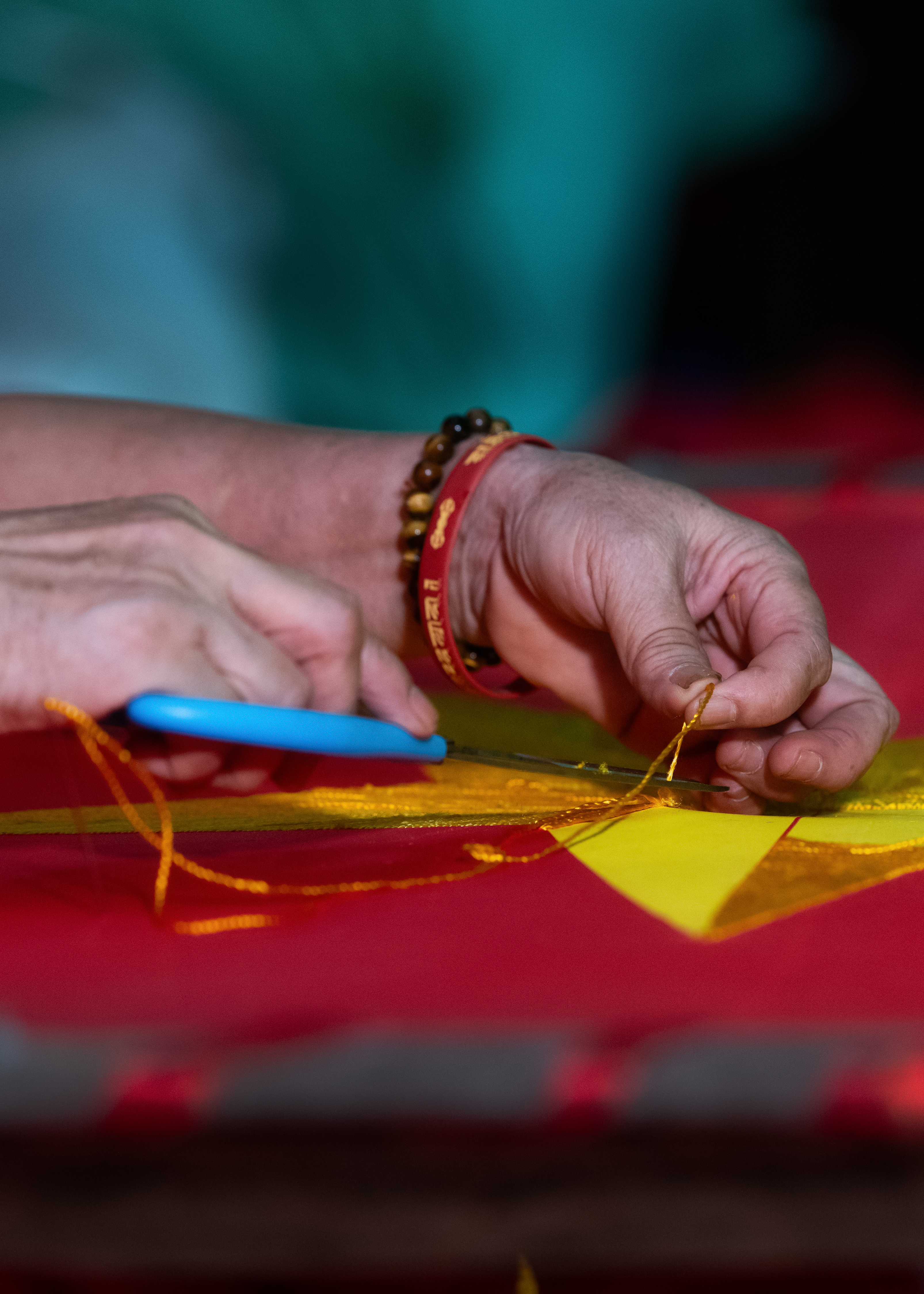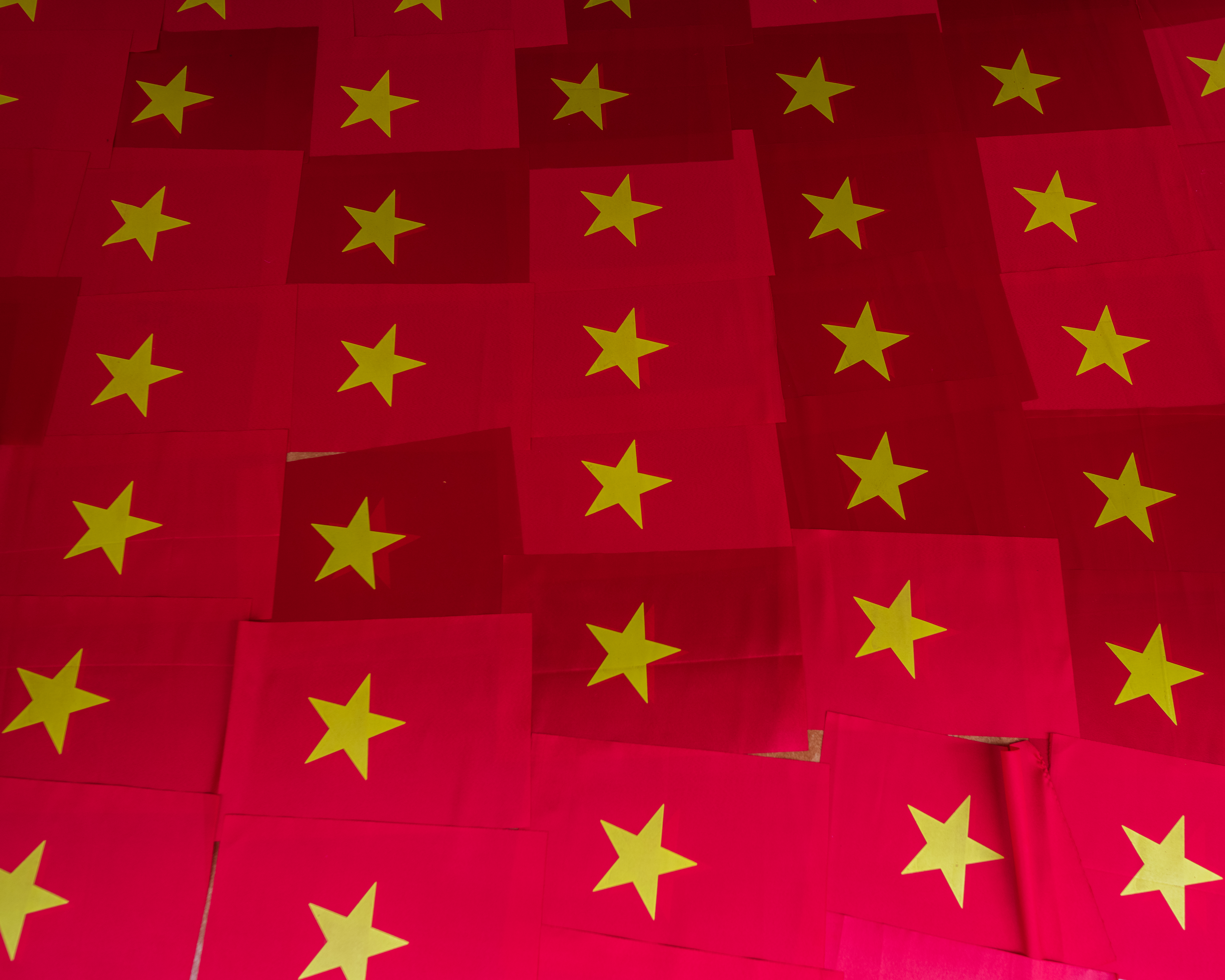 Nếu trước đây mọi khâu đều làm thủ công thì hiện nay, nhiều công đoạn có máy móc, công nghệ trợ giúp nên độ sắc nét, kích thước hay tỷ lệ ngôi sao vàng và lá cờ đỏ luôn chuẩn xác. Đó là đối với những sản phẩm đại trà, còn những sản phẩm thêu tay sao vàng thì đòi hỏi sự tỉ mỉ, tâm huyết từ người thợ. Theo chị Vương Thị Nhung, chủ một xưởng lớn ở Từ Vân, những người thêu đẹp và nhanh cũng phải mất 2 ngày dành trọn công sức cho từng đường kim, mũi chỉ. Những người mới học việc hay đang làm quen dần thì cần đến cả tuần mới cho ra được sản phẩm ưng ý.