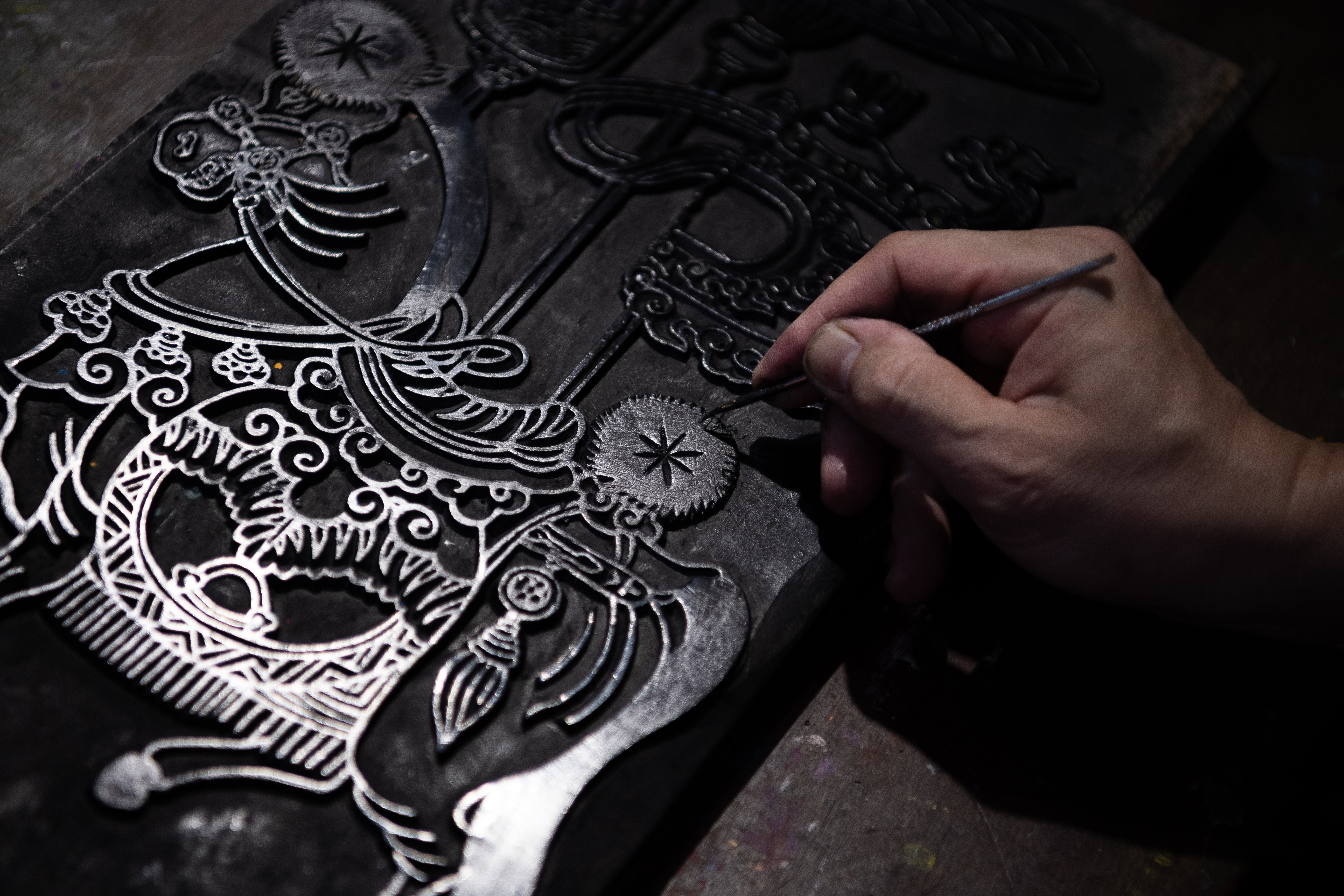 Khi Đào Đình Chung bắt tay phục dựng, anh gần như bắt đầu từ con số không. Không còn mộc bản gốc để khảo sát, không còn nghệ nhân truyền nghề, không có hệ quy chiếu kỹ thuật rõ ràng. Thứ Chung có chỉ là vài bản tranh phai màu nằm rải rác trong bảo tàng, vài ghi chép dân tộc học, và ký ức về sắc đỏ treo trên vách nhà những ngày giáp Tết. Từ những mảnh vụn ấy, anh cùng mọi người kiên trì dựng lại cả một thế giới đã biến mất, một thế giới mà phải vừa hiểu qua tư liệu, vừa cảm qua trực giác. Công việc của anh không thuần nghiên cứu mỹ thuật cổ truyền, cũng không thuần sáng tác, mà là tìm tòi ở vùng ranh giới nơi quá khứ và hiện tại giao nhau.