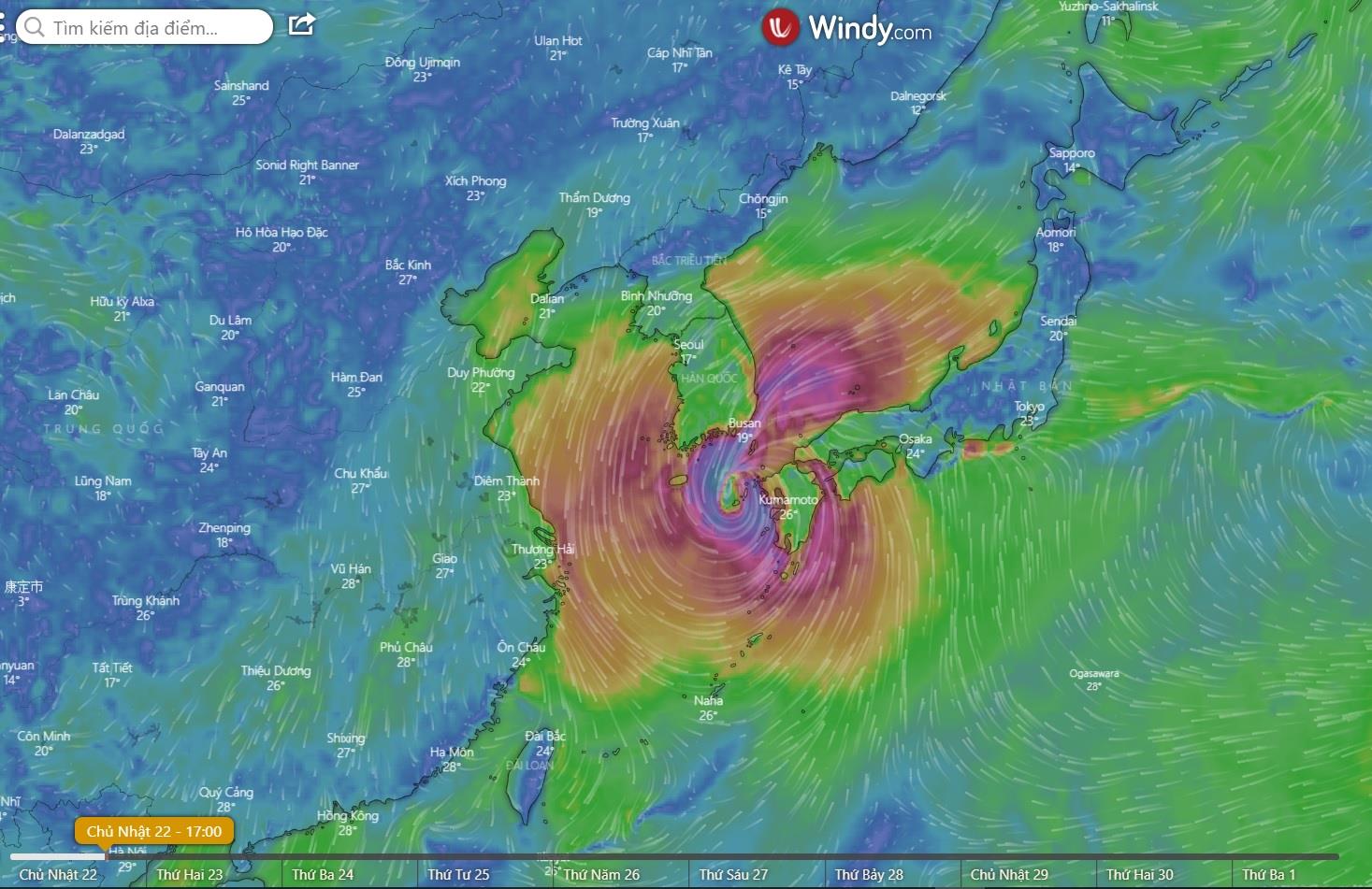 Satellite image showing Tapah tropical storm on Sept. 22. Source: Windy.com.