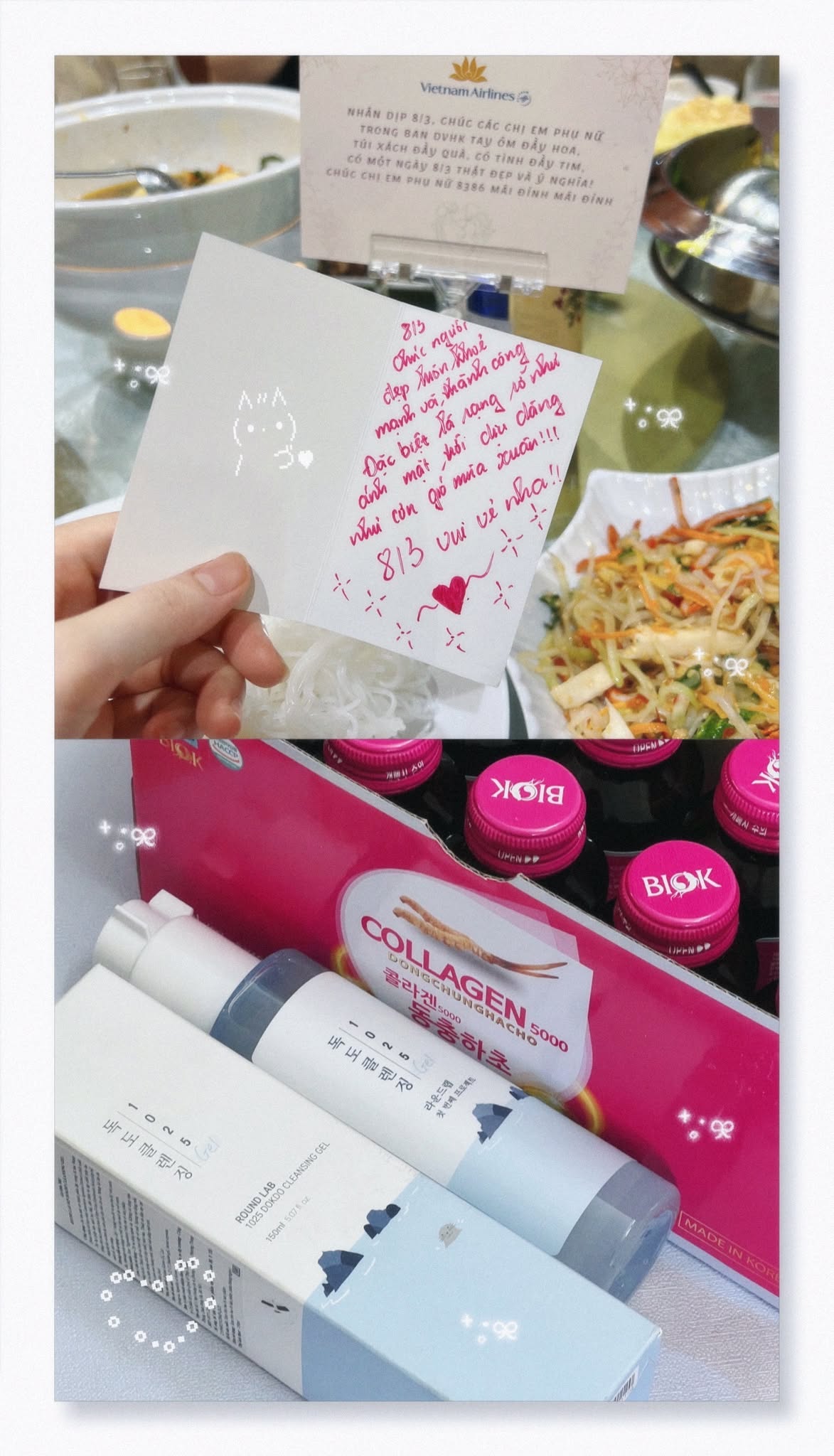 Năm nay, bên cạnh những bó hoa tươi thắm và những lời chúc chân thành, các chị em DVHK còn được nhận một món quà đặc biệt: bộ tứ chăm sóc da đến từ thương hiệu Hàn Quốc RoundLab.