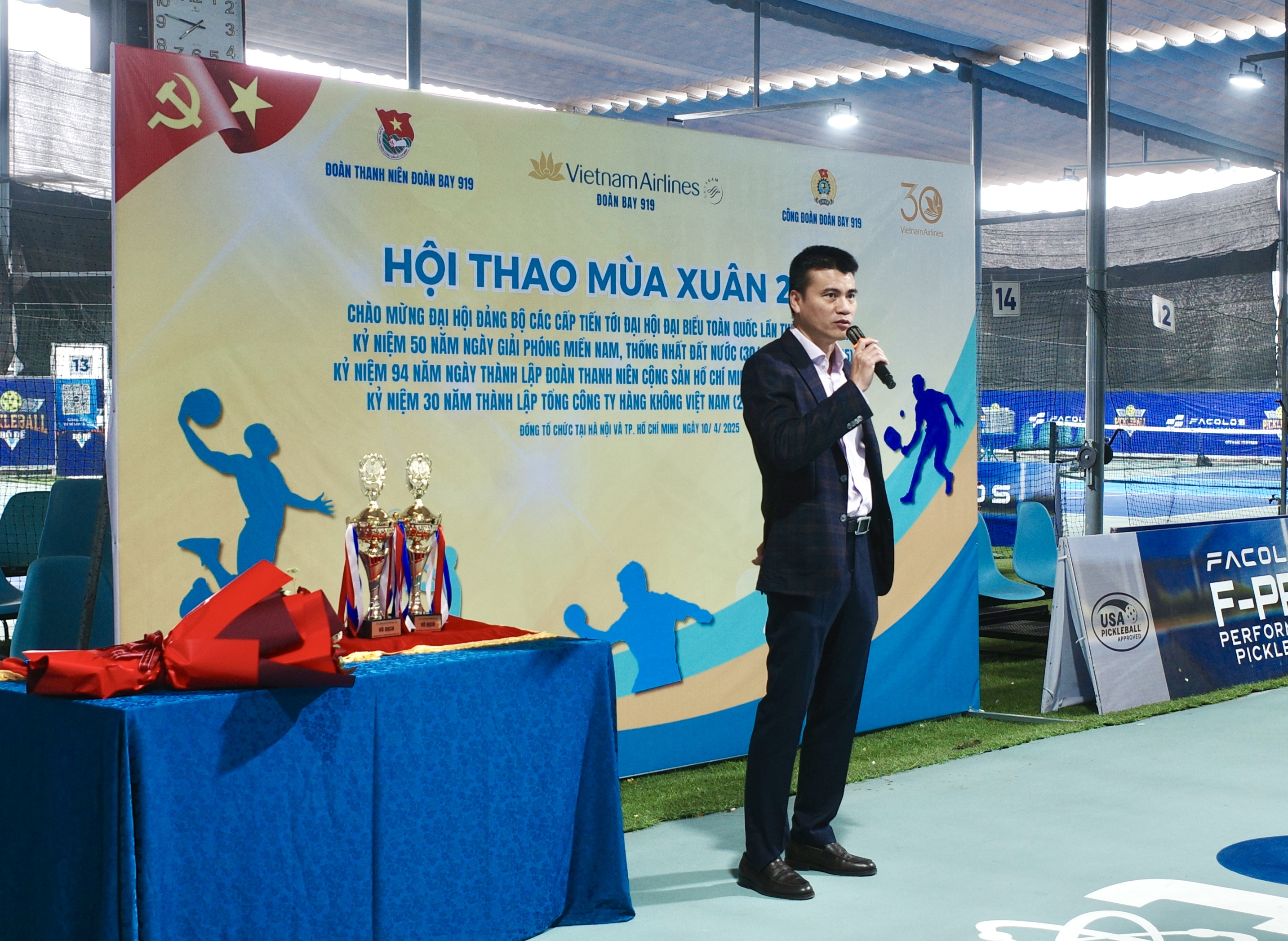 Phát biểu tại lễ khai mạc, ông Tô Ngọc Giang – Phó Tổng Giám đốc, Đoàn trưởng Đoàn bay 919, đã nhiệt liệt biểu dương tinh thần thể thao, sự hưởng ứng sôi nổi của các vận động viên đến từ các đơn vị bạn. Ông nhấn mạnh: Đảng ủy và Ban lãnh đạo Đoàn bay luôn quan tâm, tạo điều kiện để Công đoàn và Đoàn Thanh niên tổ chức các hoạt động văn hóa, thể thao không chỉ trong nội bộ mà còn mở rộng ra các đơn vị trong và ngoài Tổng công ty.