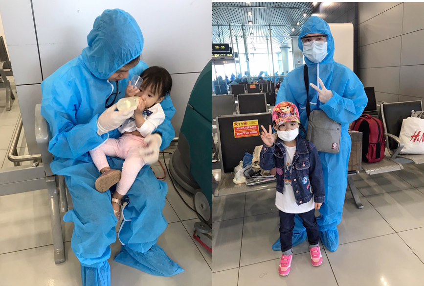 các em bé về cùng bố mẹ vẫn rất lạc quan. (Ảnh: CNEU).
