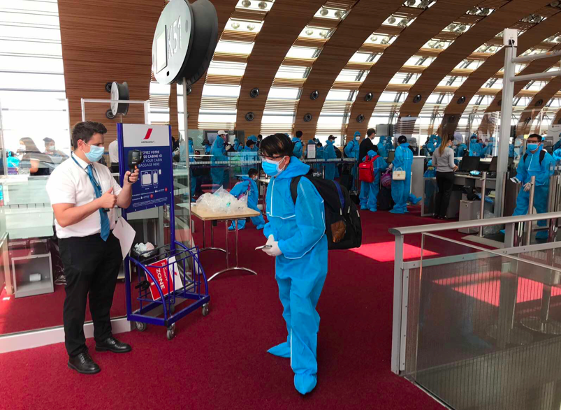 Đo thân nhiệt tại sân bay Paris-Charles-de-Gaulle, Pháp. (Ảnh: CNEU).