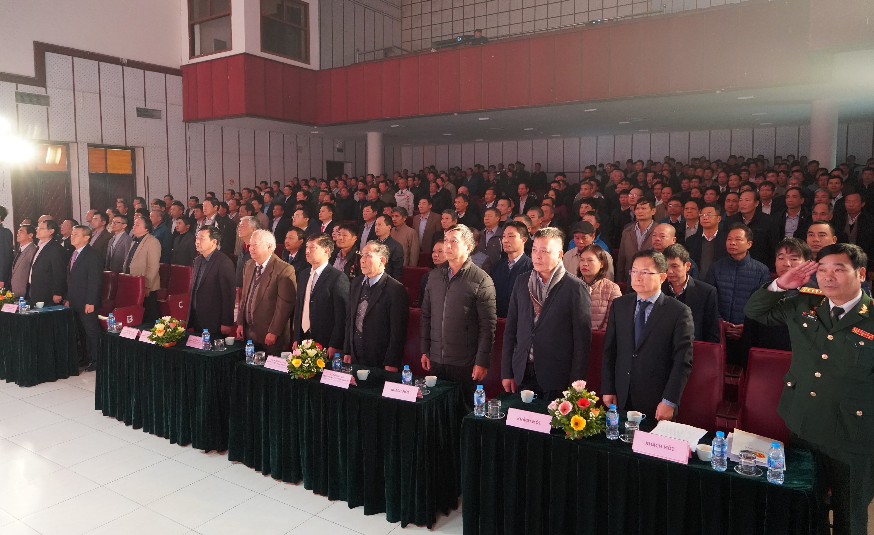 Toàn thể hội trường thực hiện nghi thức chào cờ. (Ảnh: Xuân Nghĩa).