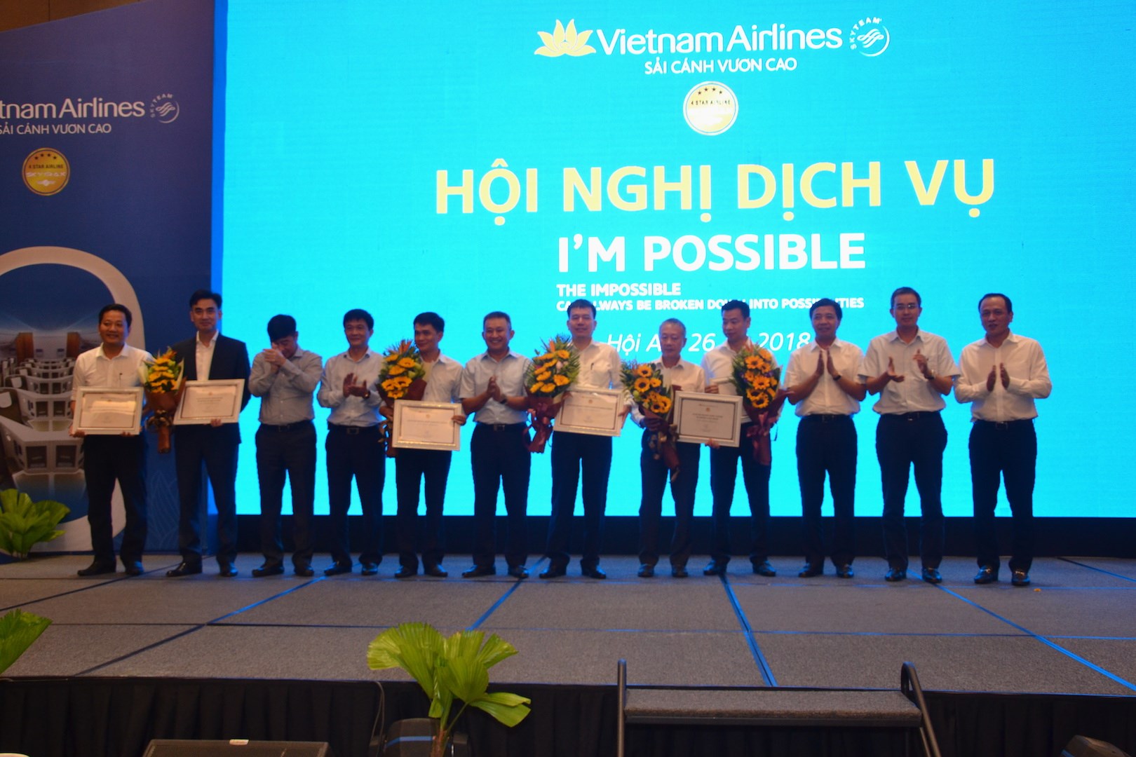 TGĐ Dương Trí Thành và các PTGĐ trao giải cho các sân bay có APMP cao nhất tại Hội nghị Dịch vụ năm 2018. (Ảnh: TT).