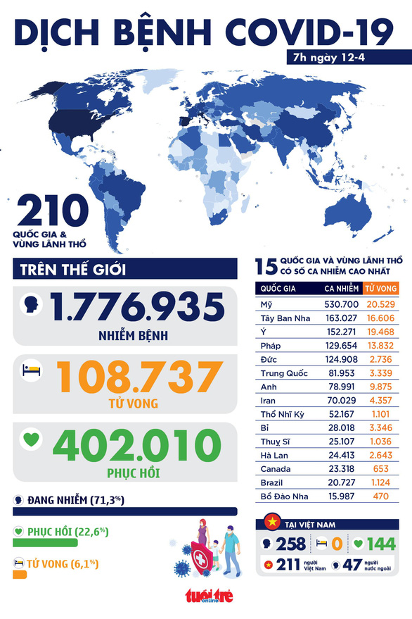 Theo thống kê của WorldOMeter, số ca tử vong của Mỹ đã tăng từ 18.747 lên 20.466, tính đến 5h30 sáng ngày 12/4 theo giờ Việt Nam. Ngoài ra, số ca nhiễm của Mỹ cũng tăng từ 502.876 lên 529.343.