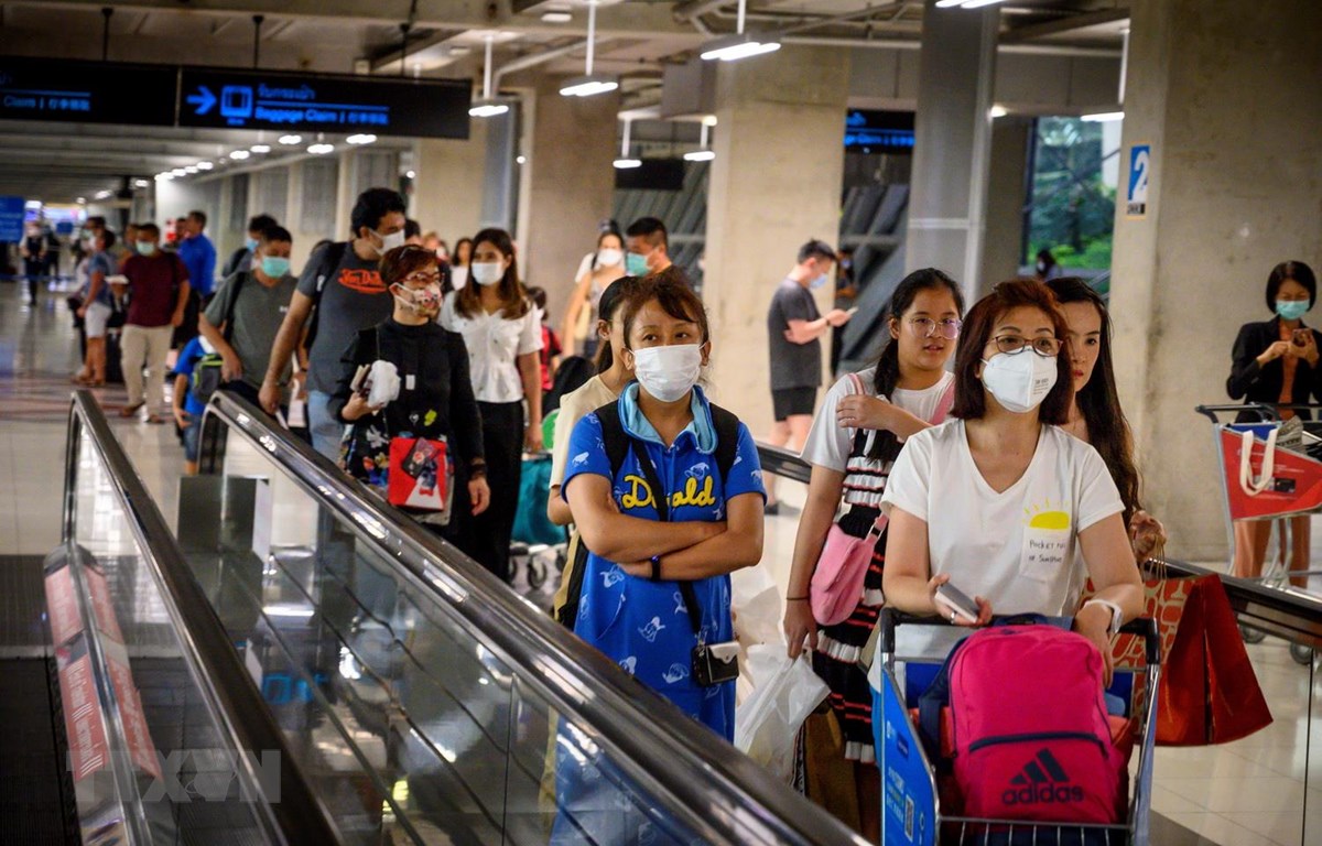 Hành khách đeo khẩu trang phòng lây nhiễm bệnh tại sân bay ở Bangkok, Thái Lan (Ảnh: AFP).