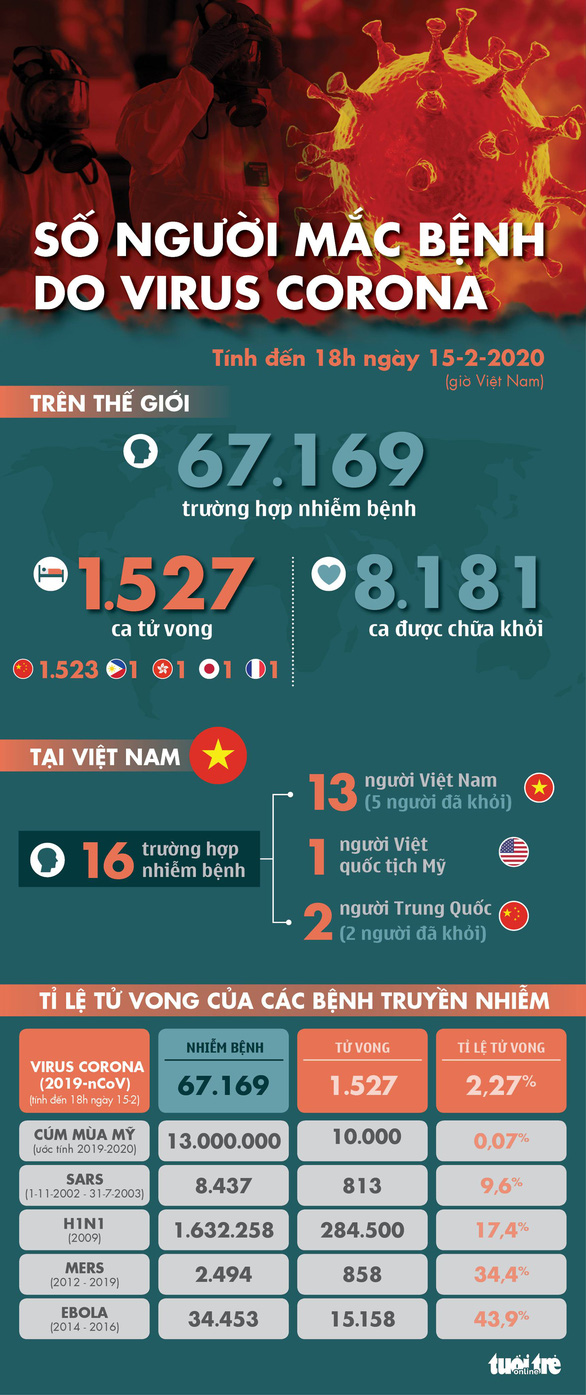 Thống kê tình hình dịch Covid-19 tính đến 18h ngày 15/2/2020 (Ảnh: Tuổi Trẻ).