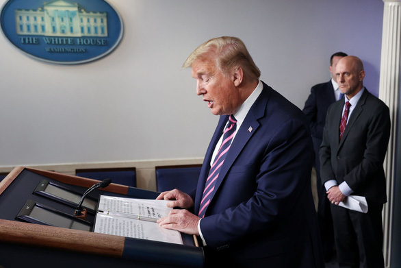 Tổng thống Mỹ Donald Trump chỉ đạo cuộc họp báo về dịch bệnh COVID-19 tại Nhà Trắng ngày 24/4-2020 (Ảnh: REUTERS).