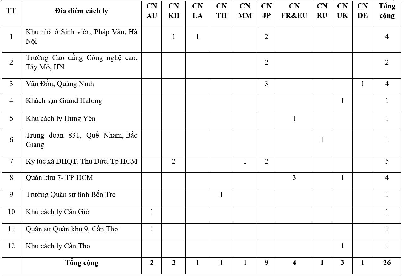 Số người cách ly tập trung là 33 người trong đó có 07 người thuộc khối CQ, ĐV và 26 người thuộc CNNN, cụ thể: