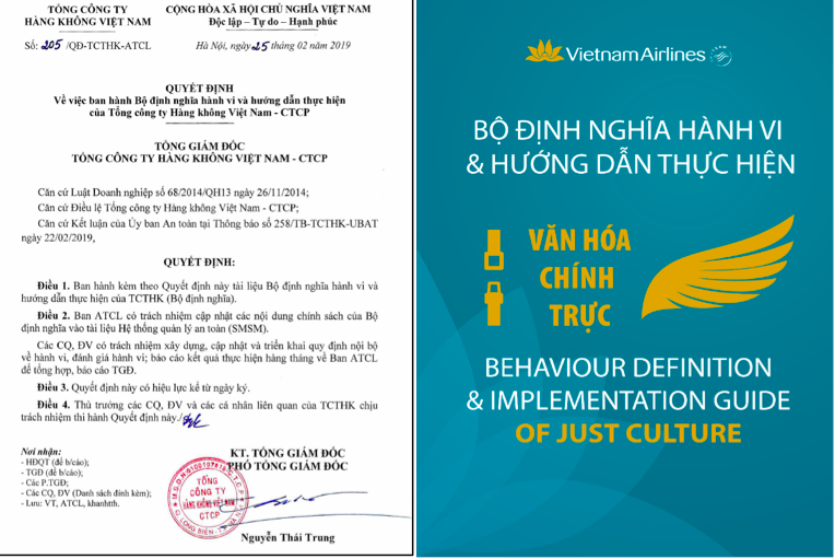Bộ định nghĩa hành vi và hướng dẫn sử dụng của Văn hóa Chính trực đang được TCT áp dụng trong xem xét hành vi và xử lý vi phạm an toàn. Các cơ quan, đơn vị khối Khai thác bay, Kỹ thuật và mặt đất triển khai đánh giá các lỗi vi phạm theo hướng dẫn trong Bộ định nghĩa và báo cáo kết quả đánh giá trong các cuộc họp SAGs hàng tháng. Bênh cạnh đó, TCT cũng triển khai ứng dụng di động của Văn hóa Chính trực trên điện thoại thông minh để CBNV có thể dễ dàng tiếp cận tìm hiểu về các mức độ hành vi của Văn hóa Chính trực.