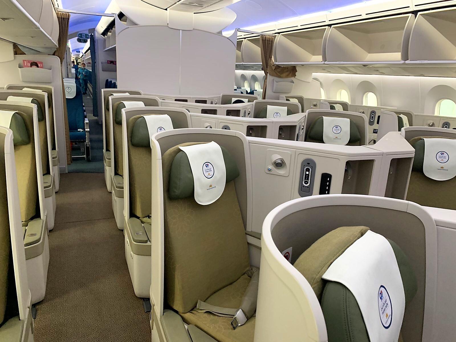Khoang tàu bay với dấu ấn của Đoàn thanh niên VNA sẵn sàng đón khách (Ảnh: VNA)