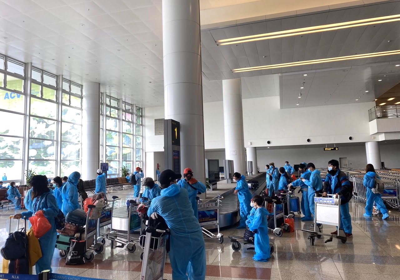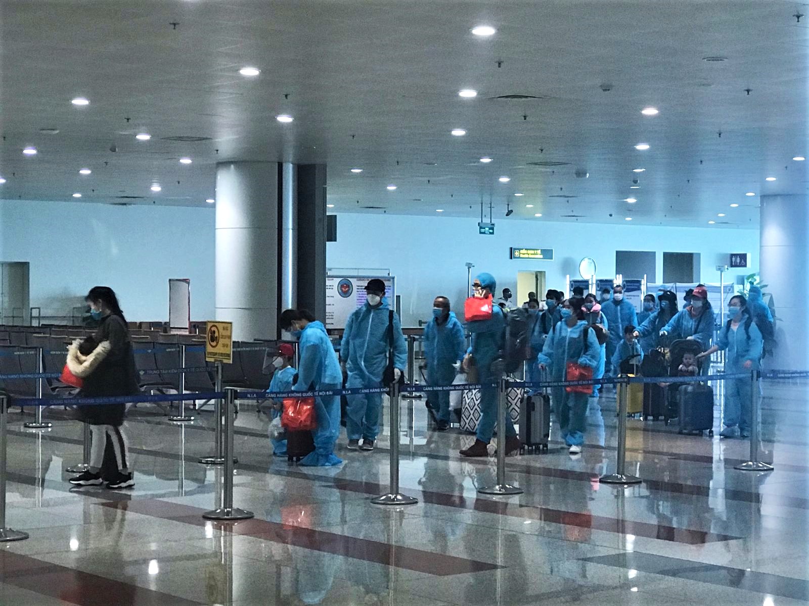 Các hành khách được kiểm tra sức khỏe và tổ chức cách ly theo quy định. (Ảnh: VNA).