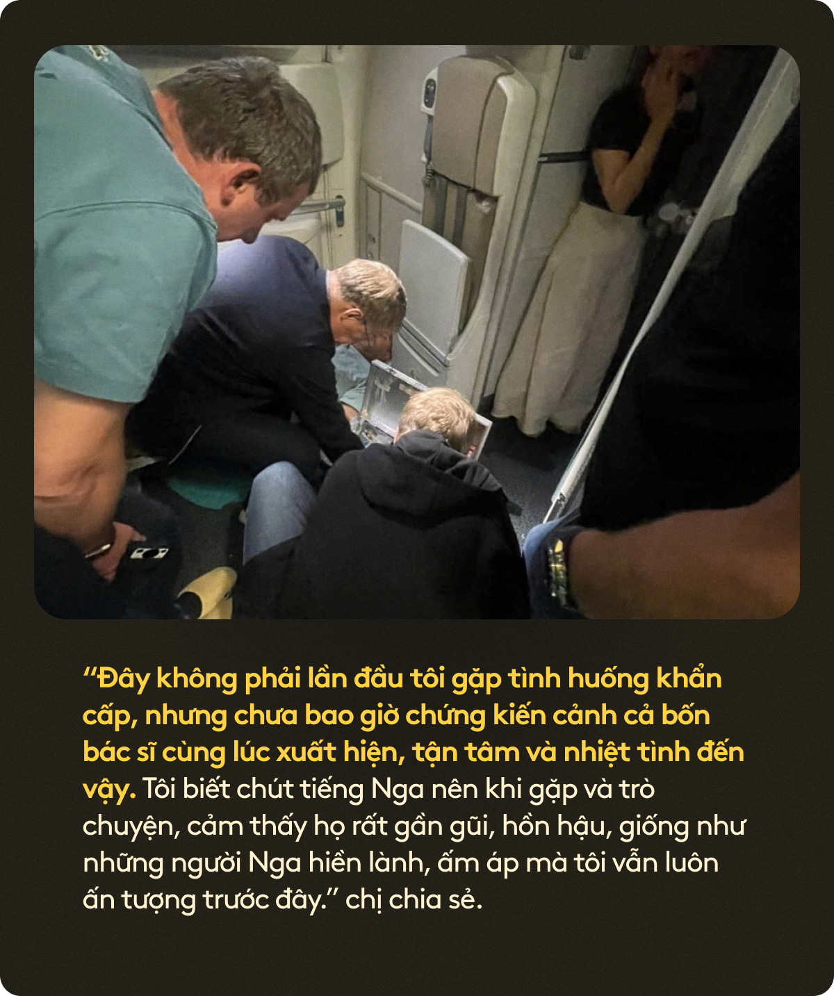 “Đây không phải lần đầu tôi gặp tình huống khẩn cấp, nhưng chưa bao giờ chứng kiến cảnh cả bốn bác sĩ cùng lúc xuất hiện, tận tâm và nhiệt tình đến vậy. Tôi biết chút tiếng Nga nên khi gặp và trò chuyện, cảm thấy họ rất gần gũi, hồn hậu, giống như những người Nga hiền lành, ấm áp mà tôi vẫn luôn ấn tượng trước đây.” chị chia sẻ.