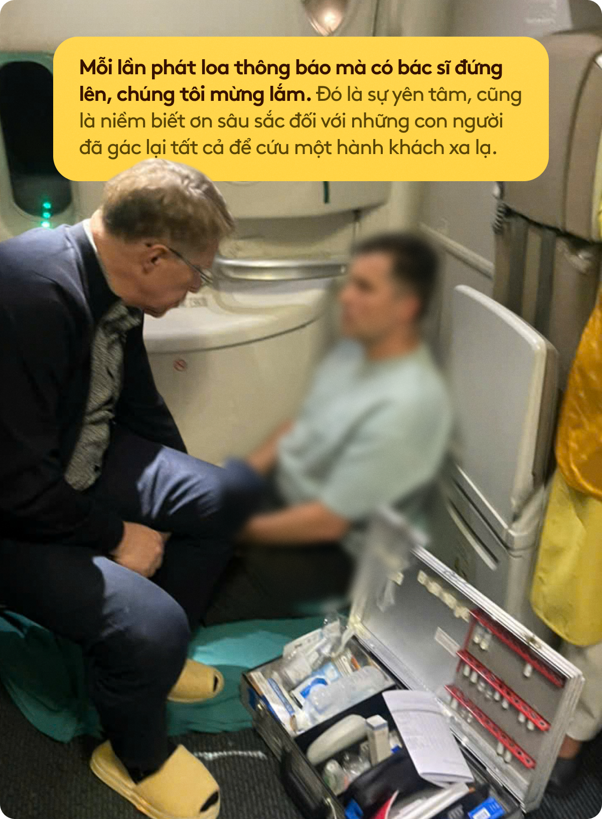 Với chị, việc được các bác sĩ hỗ trợ trên không trung là điều vô cùng quý giá, bởi môi trường máy bay khác xa mặt đất, mọi phương án xử lý đều khó khăn hơn. “Mỗi lần phát loa thông báo mà có bác sĩ đứng lên, chúng tôi mừng lắm. Đó là sự yên tâm, cũng là niềm biết ơn sâu sắc đối với những con người đã gác lại tất cả để cứu một hành khách xa lạ.