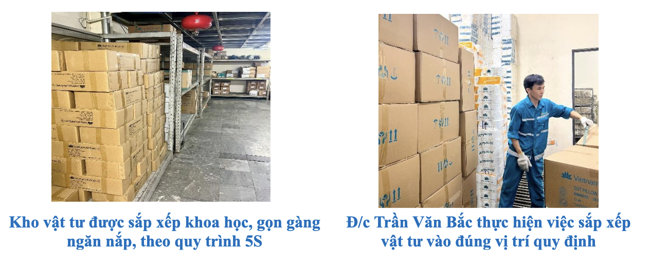 Hay như đồng chí Trần Văn Bắc – Nhân viên bộ phận kho – nhiều năm liền đạt danh hiệu Chiến sỹ thi đua, Giấy khen của TCT – đã mạnh dạn đề xuất cải tiến quy trình phân loại, sắp xếp vật tư vật phẩm theo chủng loại, thời gian và theo quy trình 5S, giúp hạn chế nhầm lẫn trong cấp phát hàng nghìn bộ tai nghe, chăn gối, vật phẩm… mỗi ngày.
