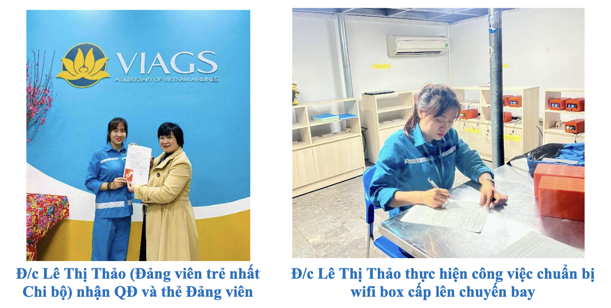 Hay như đồng chí Lê Thị Thảo – Kíp trưởng Kíp Chia vật tư, nữ đảng viên trẻ tuổi nhất trong Chi bộ – luôn đi đầu trong các buổi sinh hoạt Đoàn thể, các phong trào thi đua của đơn vị cũng như của Chi nhánh, Công ty VIAGS. Là Đảng viên trẻ nhưng đồng chí Thảo có nghiệp vụ chuyên môn sâu, nắm vững, nắm chắc định mức cấp phát vật tư vật phẩm hay các triển khai mới từ Ban DVHK đảm bảo chất lượng vật tư cấp lên đúng, đủ.