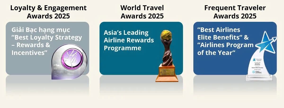 - Tại Frequent Traveler Awards 2025, Lotusmiles lập “cú đúp” với hai giải thưởng: “Best Airlines Elite Benefits“ và “Airlines Program of the Year“ thuộc hạng mục Asia Pacific.