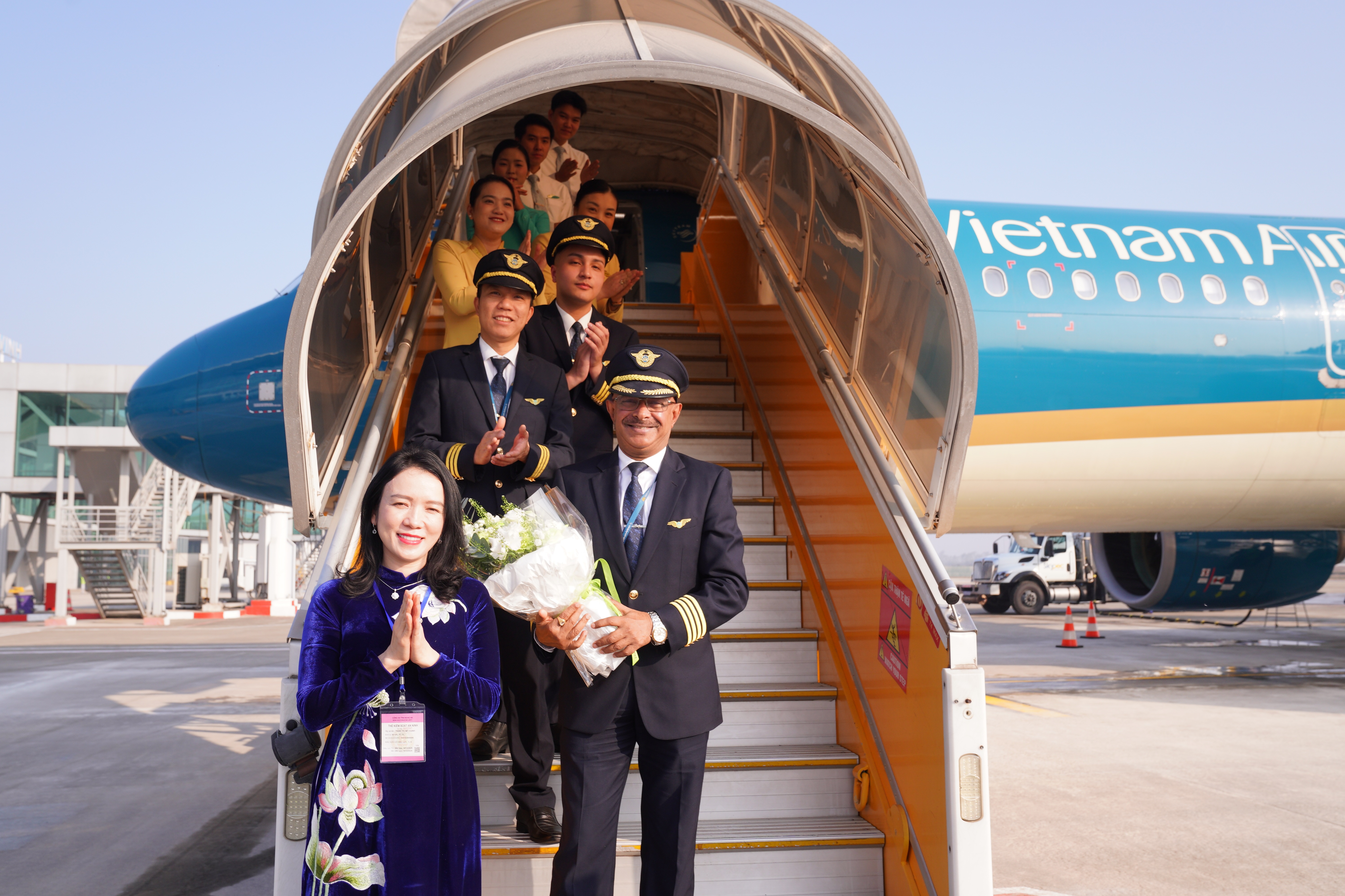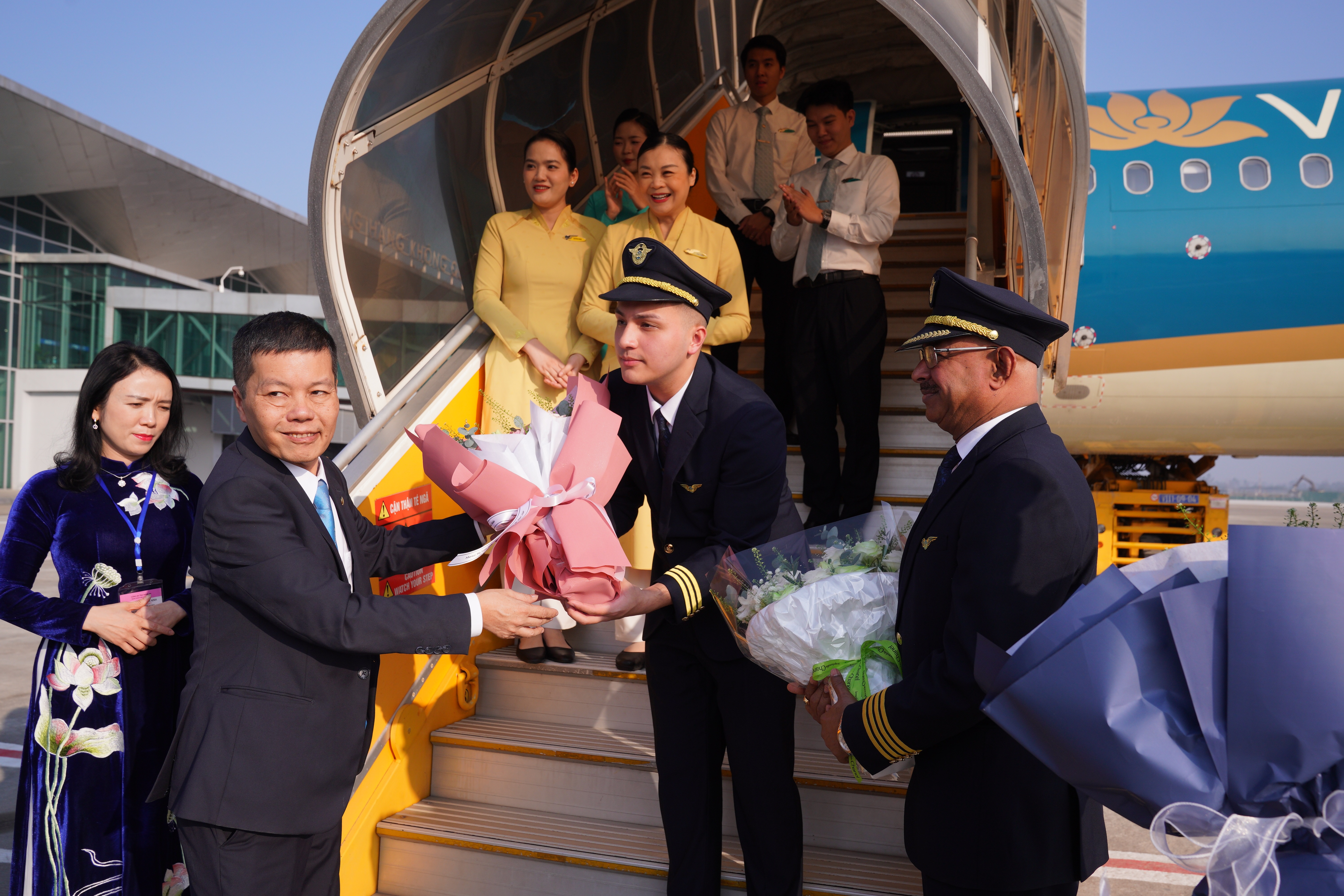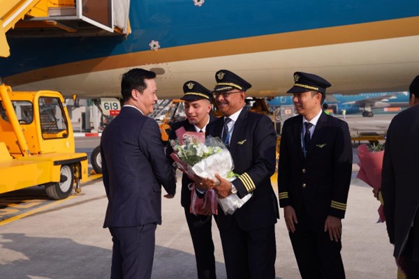 chúc mừng Phi hành đoàn đã thực hiện chuyến bay đầu tiên an toàn và đúng giờ