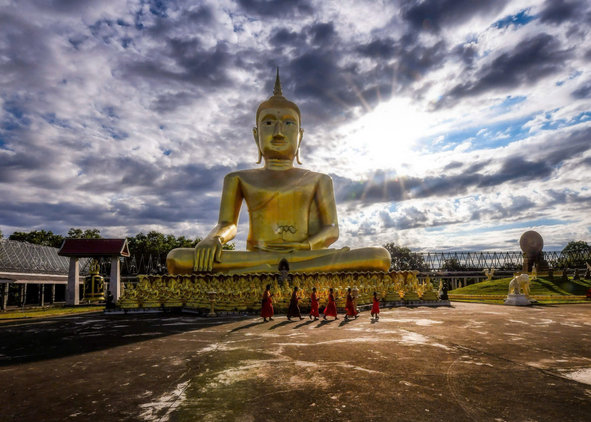 Hành trình tiếp tục đưa chúng tôi đến những lát cắt văn hoá Champasak – từ làng dệt Saphai với tiếng khung cửi đều nhịp và điệu múa đón đoàn hồn nhiên của trẻ nhỏ, đến chùa Wat Chomphet nơi nổi tiếng với bức tượng Phật cao 30m, được dự lễ buộc chỉ cổ tay theo nghi thức cầu may truyền thống của Lào.