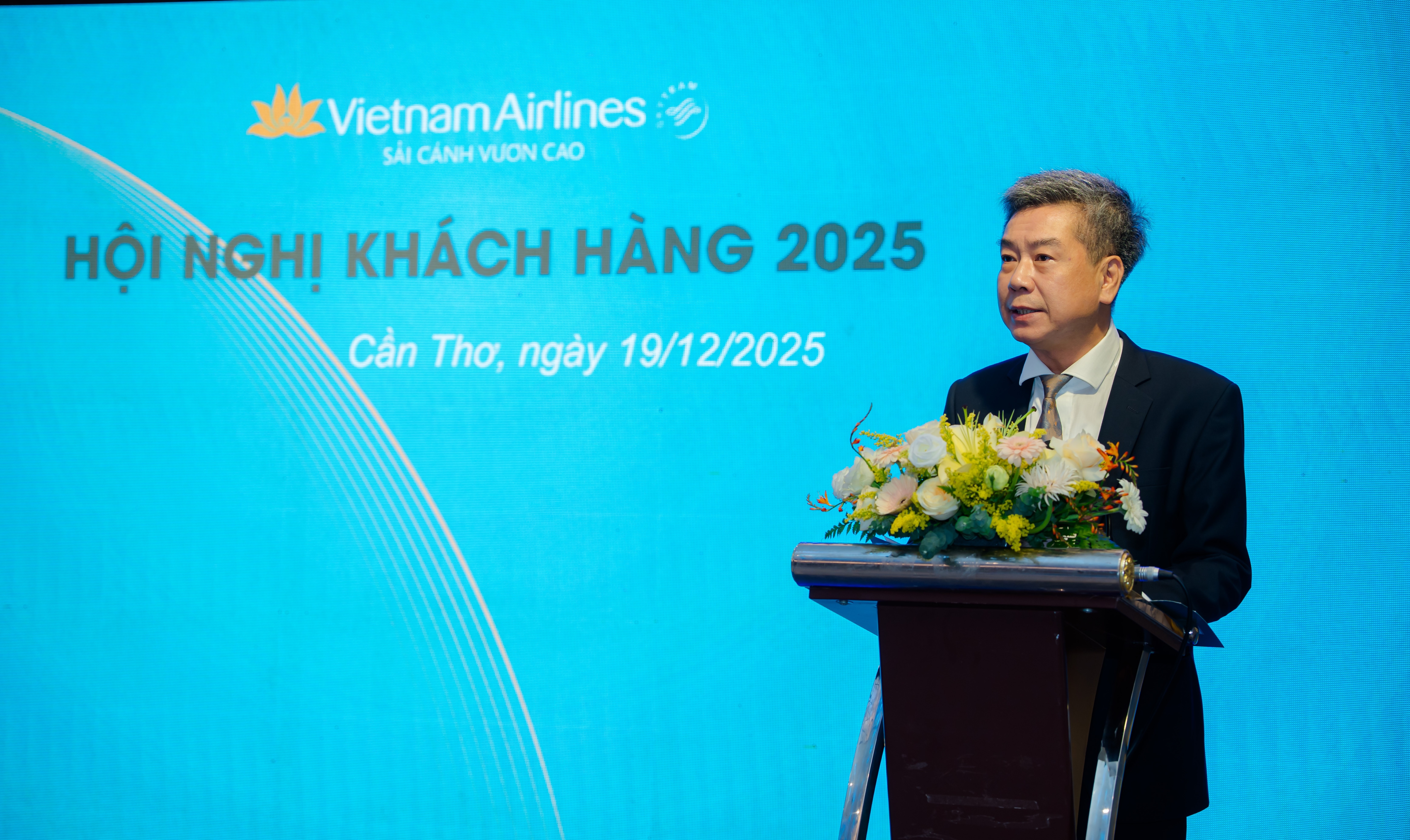 Tại hội nghị, ông Đặng Minh Việt – Trưởng Chi nhánh Cần Thơ gửi lời cảm ơn sâu sắc tới các đại lý, đối tác và khách hàng đã luôn đồng hành, tin tưởng và đóng góp tích cực cho kết quả kinh doanh của Vietnam Airlines nói chung và Chi nhánh Cần Thơ nói riêng trong năm 2025.