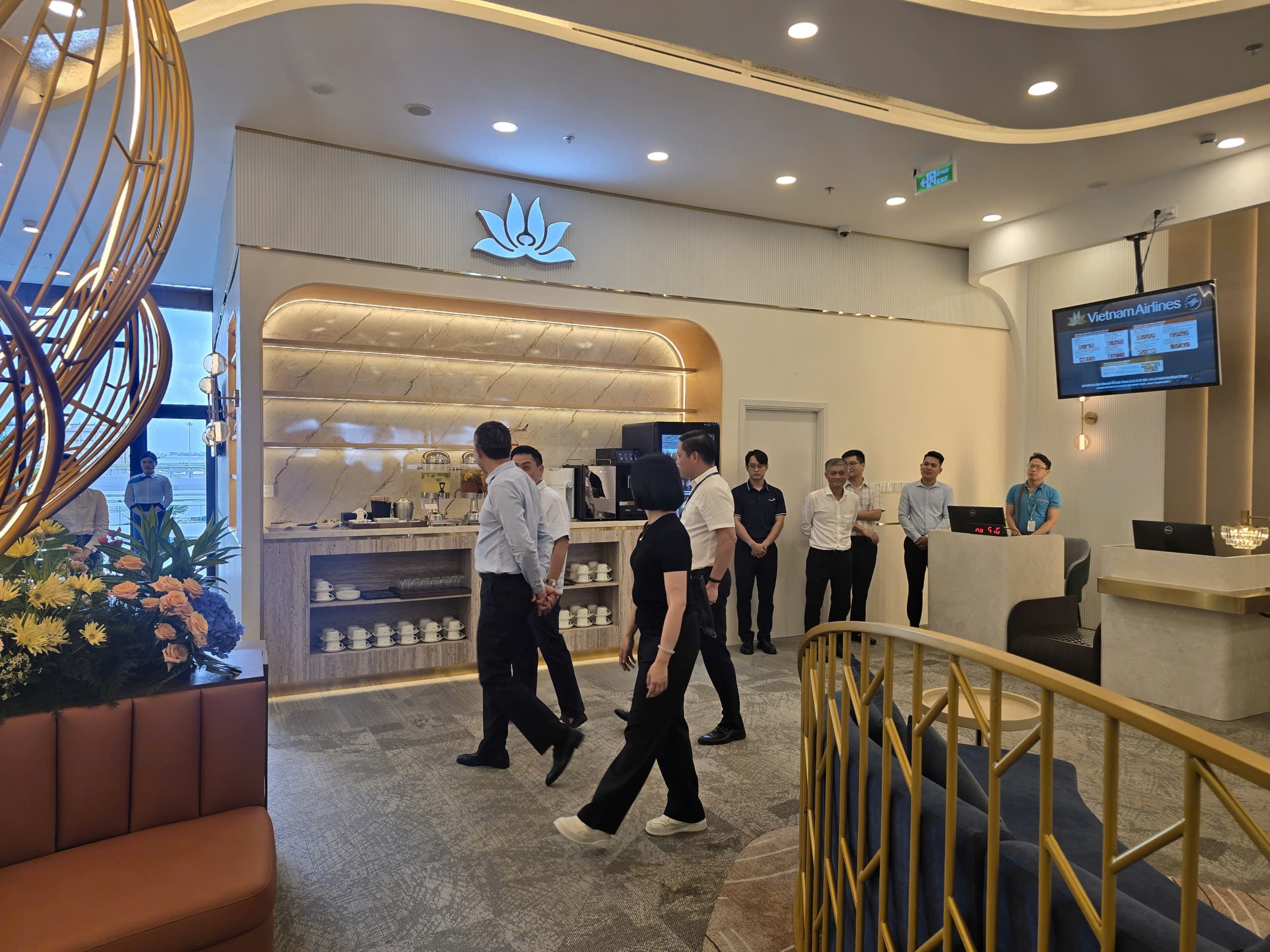 Trong buổi làm việc, Chủ tịch HĐQT đã trực tiếp kiểm tra toàn bộ không gian và quy trình phục vụ của Check-in Lounge, bao gồm khu vực đón tiếp, quầy làm thủ tục, không gian chờ và các hạng mục kỹ thuật, vận hành. Ông đánh giá cao nỗ lực của các đơn vị triển khai khi hoàn thiện công trình đúng tiến độ, đảm bảo tiêu chuẩn về thẩm mỹ, công năng và trải nghiệm cao cấp của khách hàng.