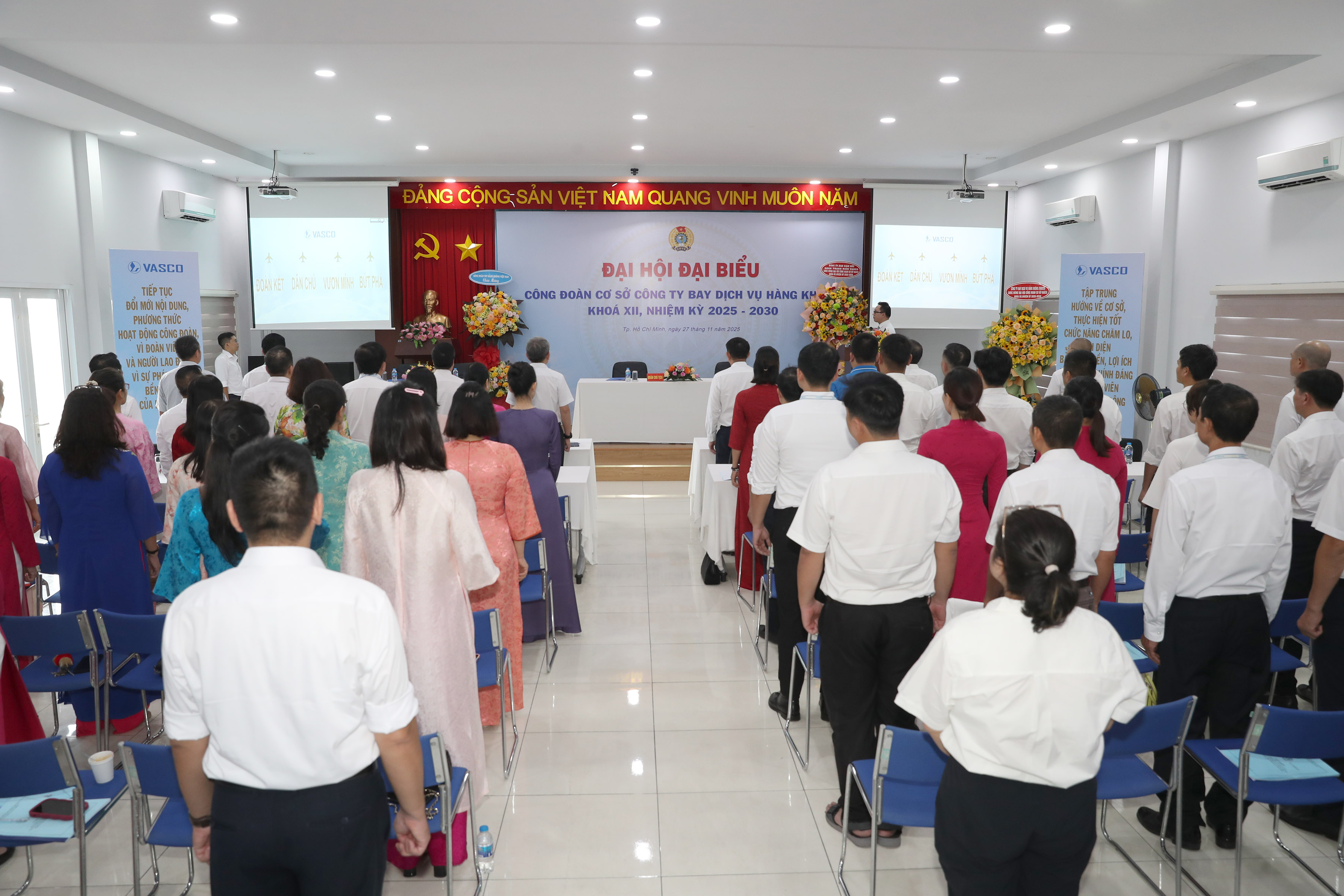 Đại hội vinh dự đón tiếp ông Trần Văn Nhu – Phó Chủ tịch Thường trực Công đoàn Tổng công ty Hàng không Việt Nam, Chủ nhiệm UBKT Công đoàn TCT, và ông Nguyễn Minh Tâm – Phó Bí thư Đảng ủy phụ trách Đảng bộ, Phó Giám đốc phụ trách VASCO. Sự hiện diện của đại diện lãnh đạo Tổng công ty và Công ty đã thể hiện sự quan tâm sâu sắc đối với hoạt động Công đoàn trong giai đoạn mới.