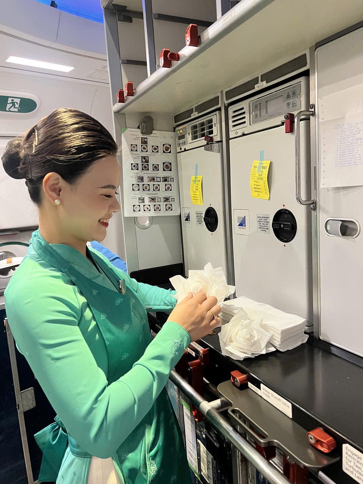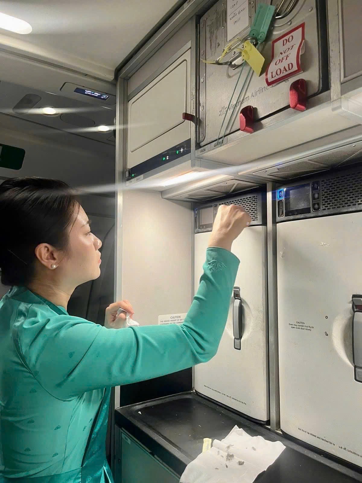 Nhiều tổ bay chủ động dọn sạch khoang khách trước khi hạ cánh để giảm áp lực cho lực lượng vệ sinh sau chuyến bay. Tiếp viên trưởng đóng vai trò nhắc nhở, hỗ trợ và kiểm tra lại toàn bộ khoang khách trước khi bàn giao. Nhờ sự phối hợp nhịp nhàng ấy, chất lượng vệ sinh và phục vụ trên tàu bay vẫn luôn được duy trì ở mức cao nhất, dù áp lực khai thác tăng lên gấp nhiều lần.