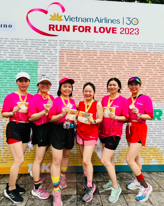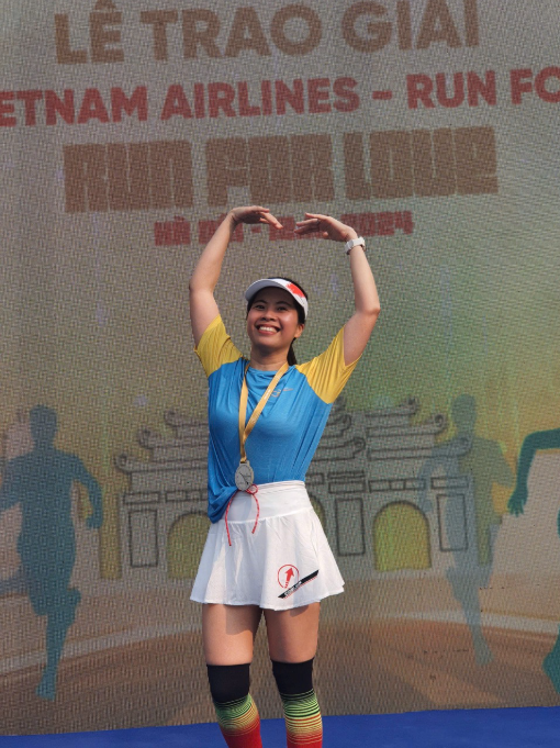 Hơn thế nữa, chị Huế còn bày tỏ cảm xúc đặc biệt và đầy tự hào khi được mặc lên mình chiếc áo đồng phục của Run For Love. Chị bộc bạch với gương mặt rạng ngời: “Mặc vào chị thấy oách lắm!”. Chiếc áo ấy không chỉ đơn thuần là trang phục thể thao, mà còn là biểu tượng của tinh thần đồng đội, của sự gắn kết và của niềm tự hào khi là một thành viên của Vietnam Airlines.