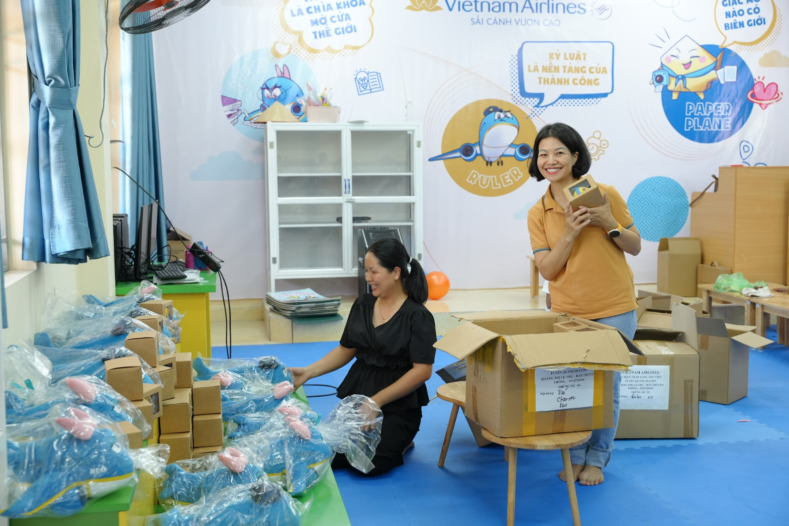 Không chỉ dừng lại ở việc hỗ trợ kinh phí, tập thể cán bộ nhân viên Vietnam Airlines đã góp công, góp sức để hoàn thiện món quà đặc biệt. Chính bàn tay, tấm lòng của họ đã tạo nên một không gian học tập thân thiện, nhiều cảm hứng, giúp các em học sinh thêm hứng khởi trong hành trình đến trường.