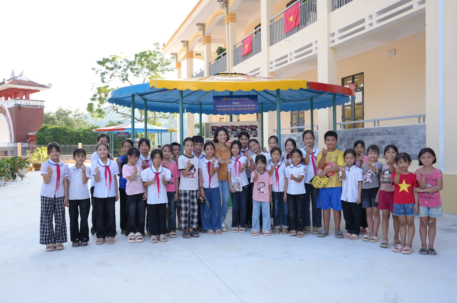 Trong dịp khai giảng năm nay, Vietnam Airlines gửi tặng thầy và trò Trường Tiểu học 19-8 một thư viện khang trang cùng những chiếc chăn ấm áp. Món quà này không chỉ mang đến niềm vui bất ngờ trong ngày đầu năm học mới, mà còn gửi gắm thông điệp dài hạn đồng hành cùng giáo dục, tiếp thêm động lực và khát vọng cho các em học sinh nơi vùng cao.