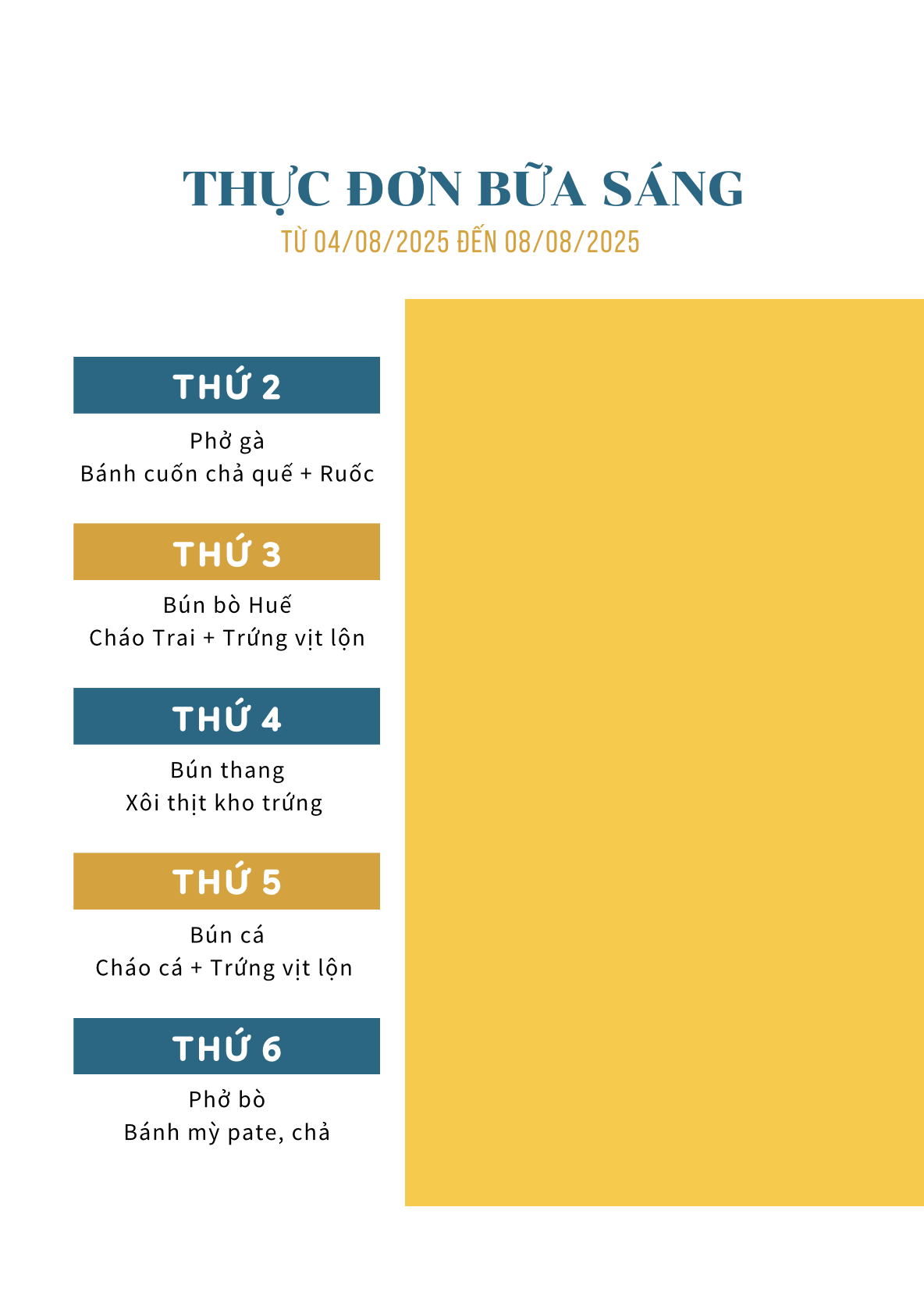 Buổi sáng, bạn có thể chọn bún bò Huế đậm đà, phở gà thơm nức, bánh cuốn mềm mịn hay cháo trai, xôi trứng, bánh mì sốt vang… – chỉ là vài gợi ý tiêu biểu trong thực đơn vẫn thay đổi đều đặn mỗi ngày.