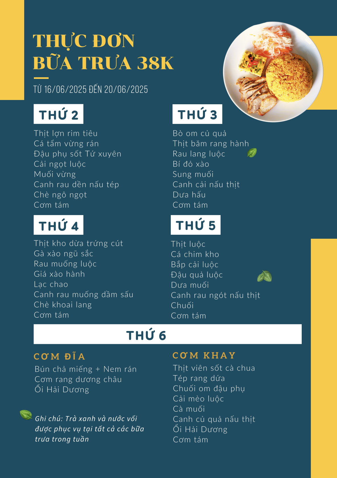 Đến trưa, cơm nóng luôn có mặt đúng giờ với thực đơn thay đổi mỗi ngày – từ món mặn đậm đà, canh thanh mát đến rau củ tươi ngon. Các món được chuẩn bị chu đáo, đảm bảo chất lượng và dinh dưỡng, giúp anh chị em yên tâm tiếp thêm năng lượng cho buổi chiều làm việc hiệu quả.