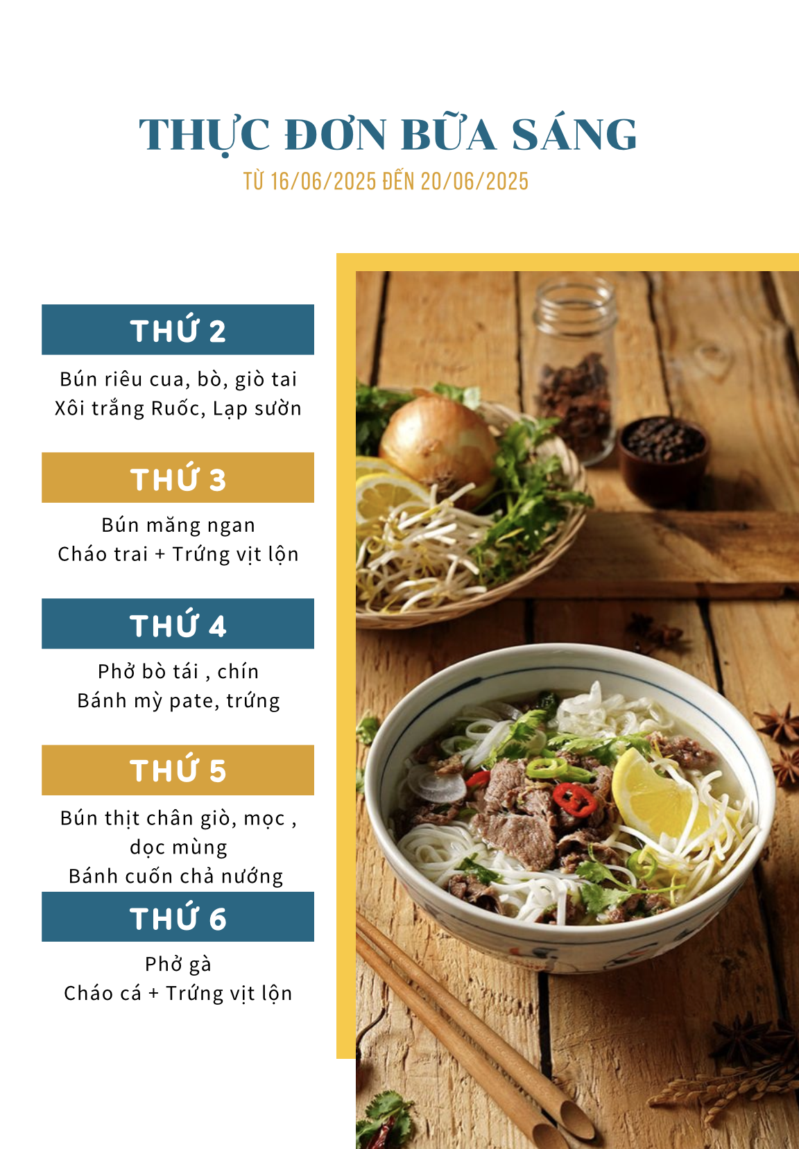 Bữa sáng là những món quen thuộc nhưng luôn khiến người ta thấy ấm lòng: bún riêu cua đậm đà, bún ngan măng thơm ngậy, phở bò thanh vị, bánh mì giòn rụm, bánh cuốn mềm mịn hay xôi dẻo nóng hổi.