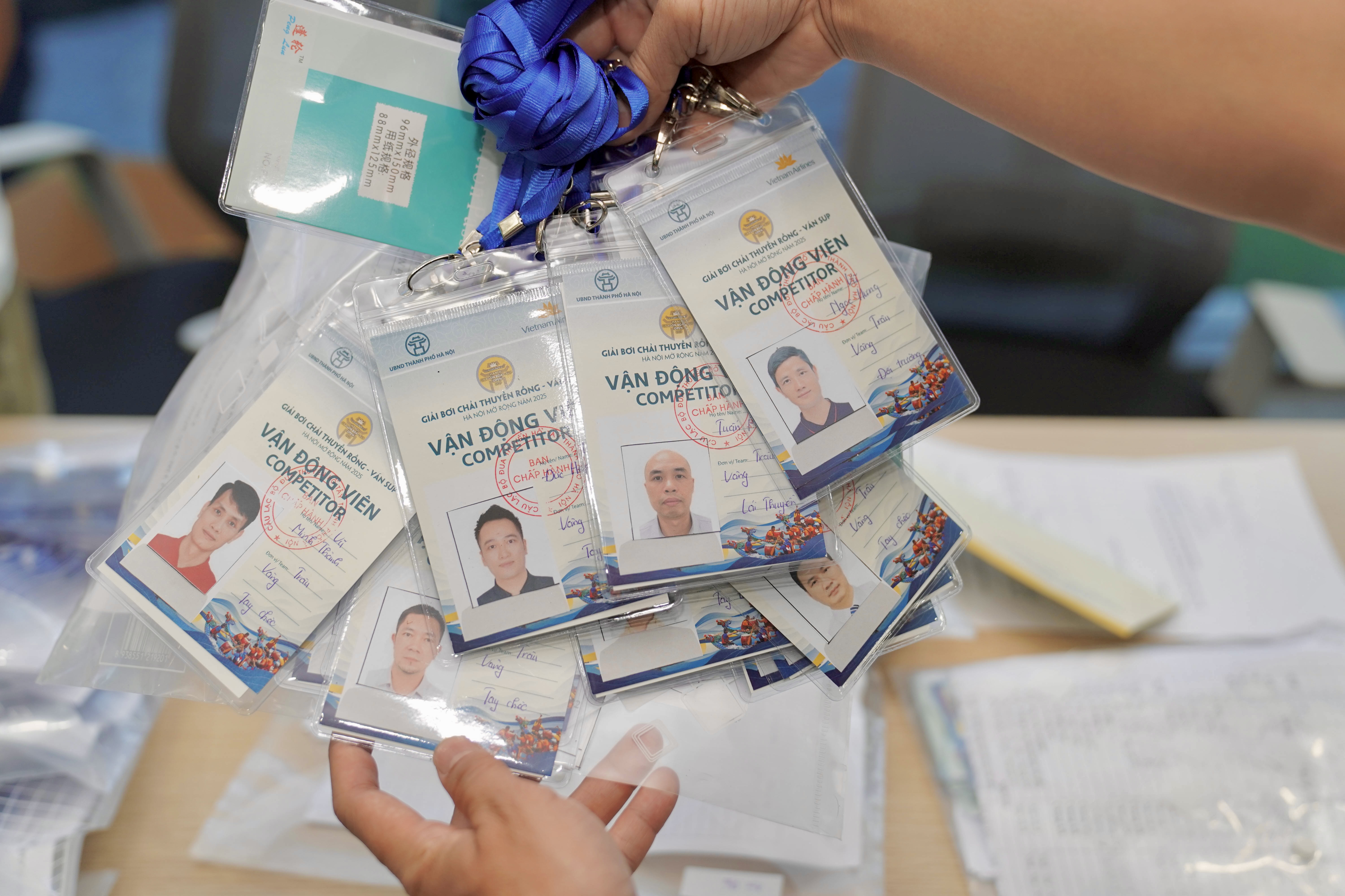 Đại diện các đội nhận chương trình thi đấu, thẻ VĐV,… từ Ban Tổ chức để sẵn sàng tranh tài quyết liệt, mang tới những màn trình diễn đầy cảm xúc tại Hồ Tây ngày 5/10. (Ảnh: VNA)