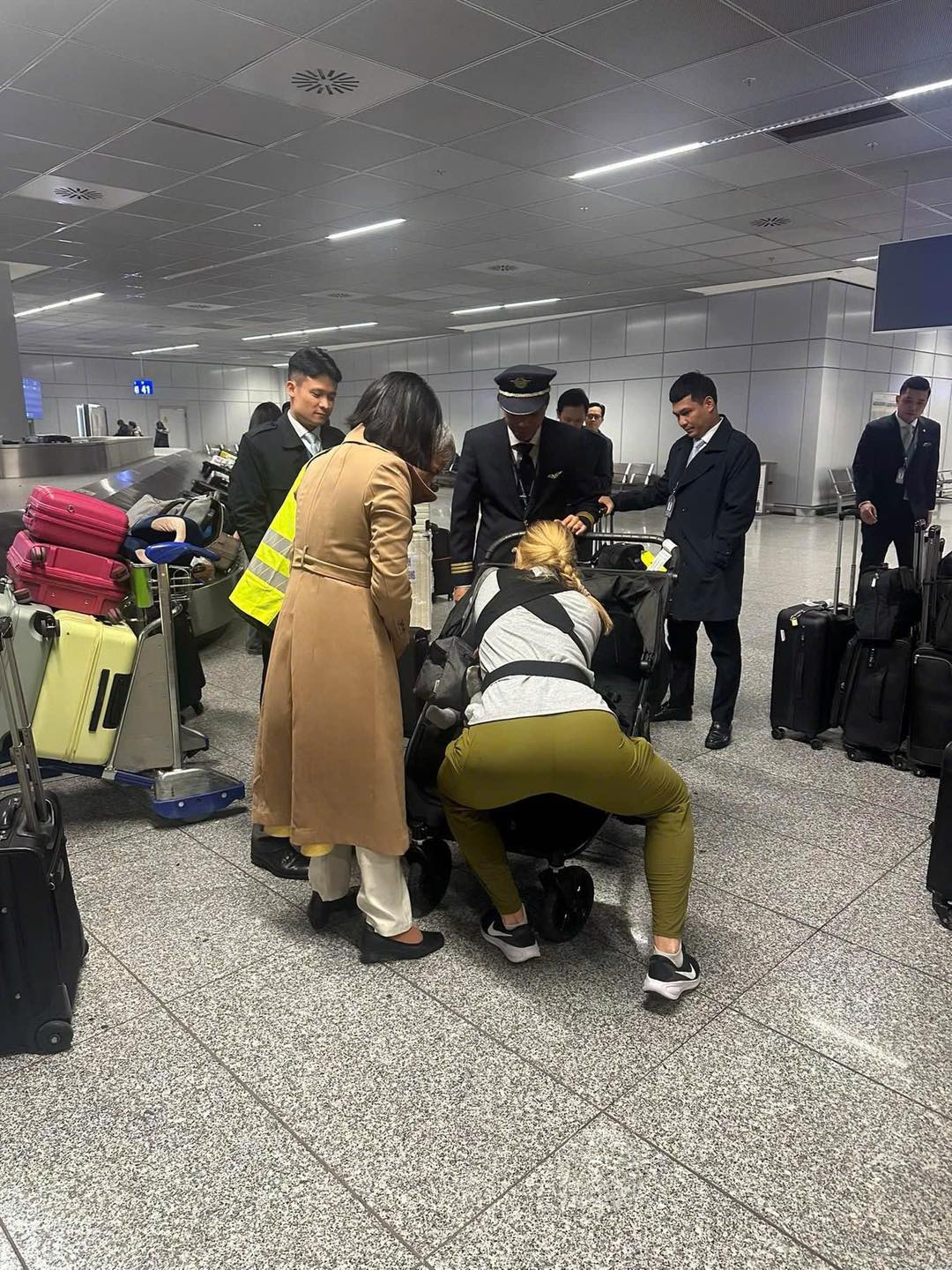 Chỉ cần một ánh nhìn của Tiếp viên trưởng Trần Quỳnh Chi, cả tổ tiếp viên lập tức phối hợp nhịp nhàng. Người bế một em bé. Người đẩy xe đẩy và hành lý. Người hướng dẫn thủ tục nhập cảnh. Đại diện hãng tại sân bay cũng nhanh chóng có mặt để hỗ trợ tiếp tục hành trình.